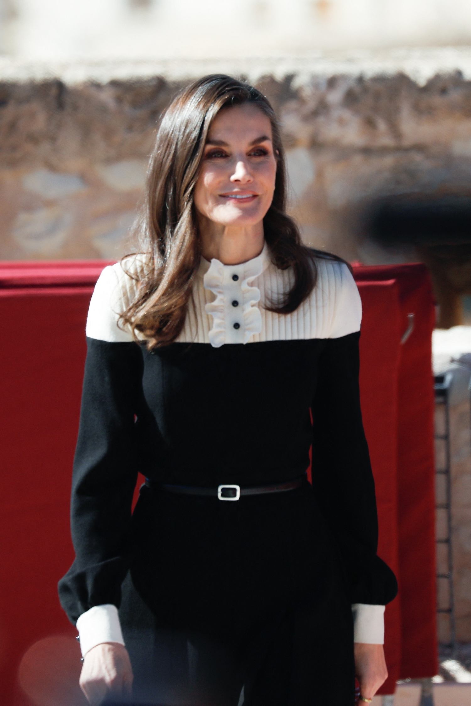 Letizia täydensi tyylikkään kokonaisuuden kapealla nahkavyöllä ja mustilla nilkkureilla, todistaen jälleen, kuinka kuninkaallinen pukeutuminen voi olla yhtä aikaa klassista ja modernia.
