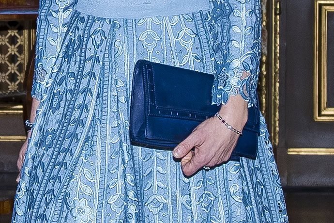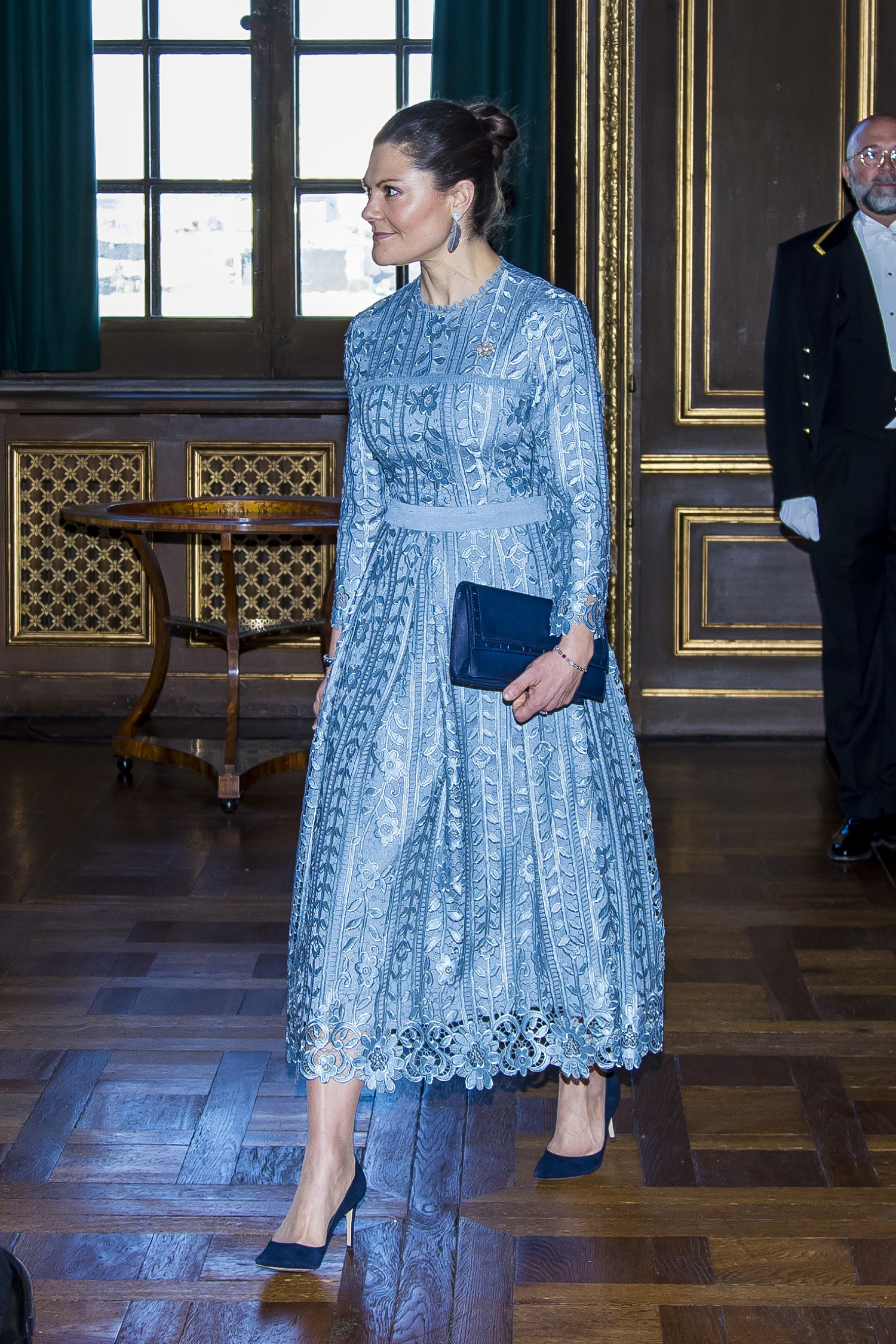 Eilen Victoria saapui isänsä kuningas Kaarle Kustaan kanssa tapaamaan Ruotsin hallitusta. Ylleen hän oli valinnut vaaleansinisen pitkähihaisen mekon, jota koristivat kauniit kirjailut. Sama sininen teemaväri näkyi myös muualla asussa. Victorian jaloissa nähtiin nimittäin tummansiniset korkokengät ja samaa sävyä nähtiin myös käsilaukussa.