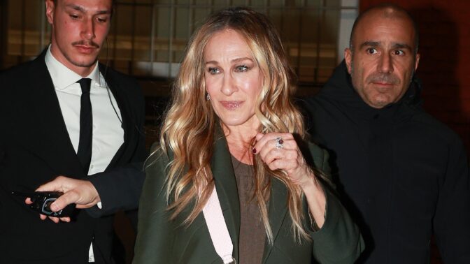 Parkerin asu muistutti vahvasti hänen tunnetuimman roolihahmon Carrie Bradshawn vaatekaapista napattua kokonaisuutta. Bradshaw’n tyyli on tunnettu oivaltavista värien yhdistelmistä, ja tämä asu viehättätti juuri täydellisellä kombolla pehmeää ruskeaa ja syvää vihreää.