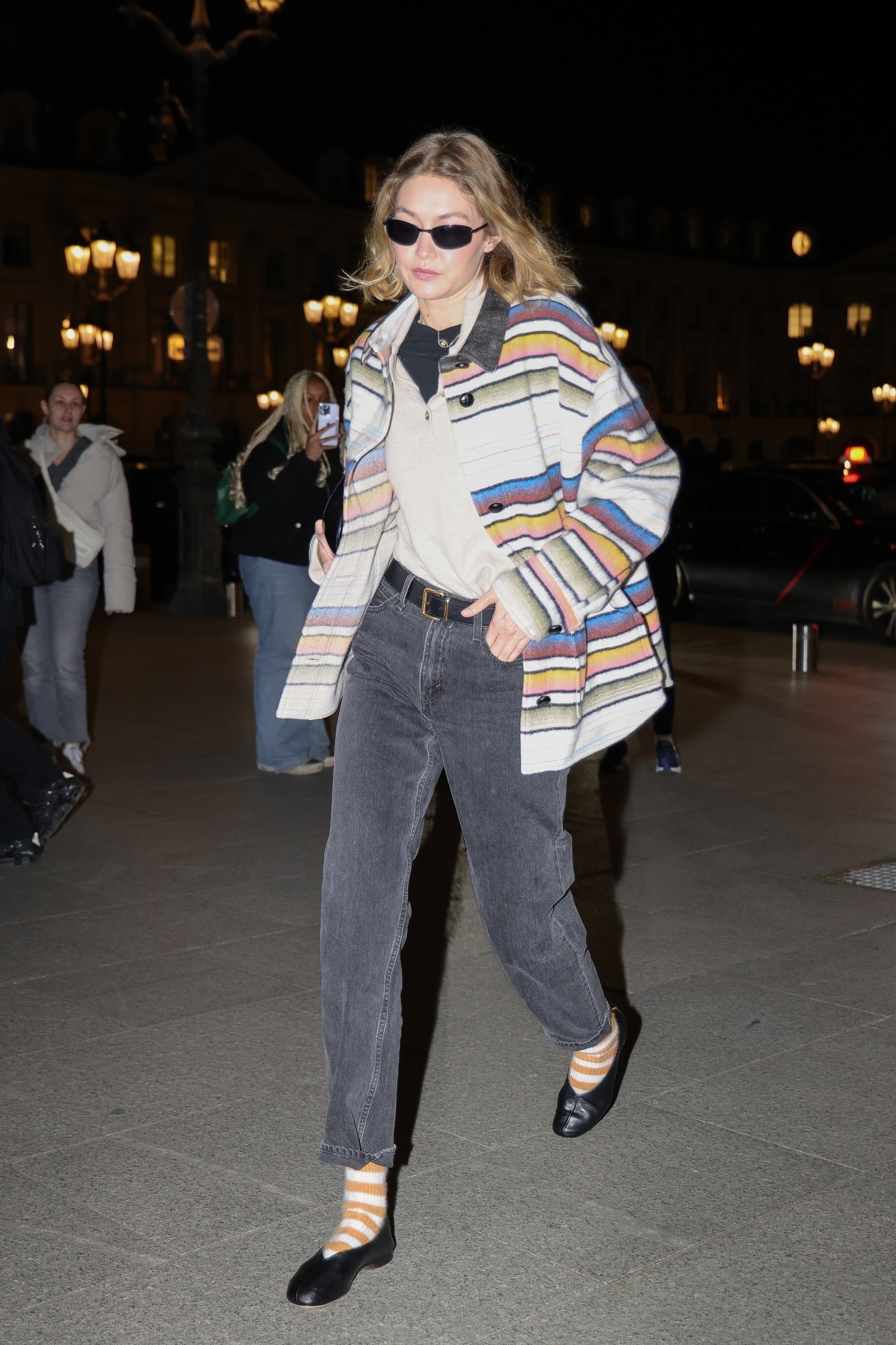 Näin teki muun muassa Gigi Hadid, joka nähtiin kaupungilla asussa jossa eräs yksityiskohta varmasti jakaa mielipiteitä. Hadid oli nimittäin yhdistänyt asuunsa suloiset ballerinat, joiden kaveriksi hän oli valinnut värikkäät raitasukat.