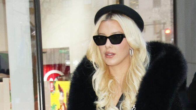 Viime viikolla Brown ikuistettiin kuviin asussa, joka oli päästä varpaisiin leopardikuosia. Look koostui trenssistä, nilkkureista, pillerihatusta sekä aurinkovarjosta. Tällä viikolla sen sijaan Brown luotti ”dalmatialaiskuosiin”. Hän oli sonnustautunut samaa kuosia olevaan jakkuun ja minihameeseen. Niiden kaveriksi hän oli yhdistänyt mustan baskerin, mustan karvatakin sekä näyttävät paksupohjaiset kengät.