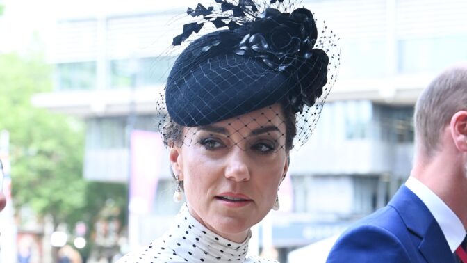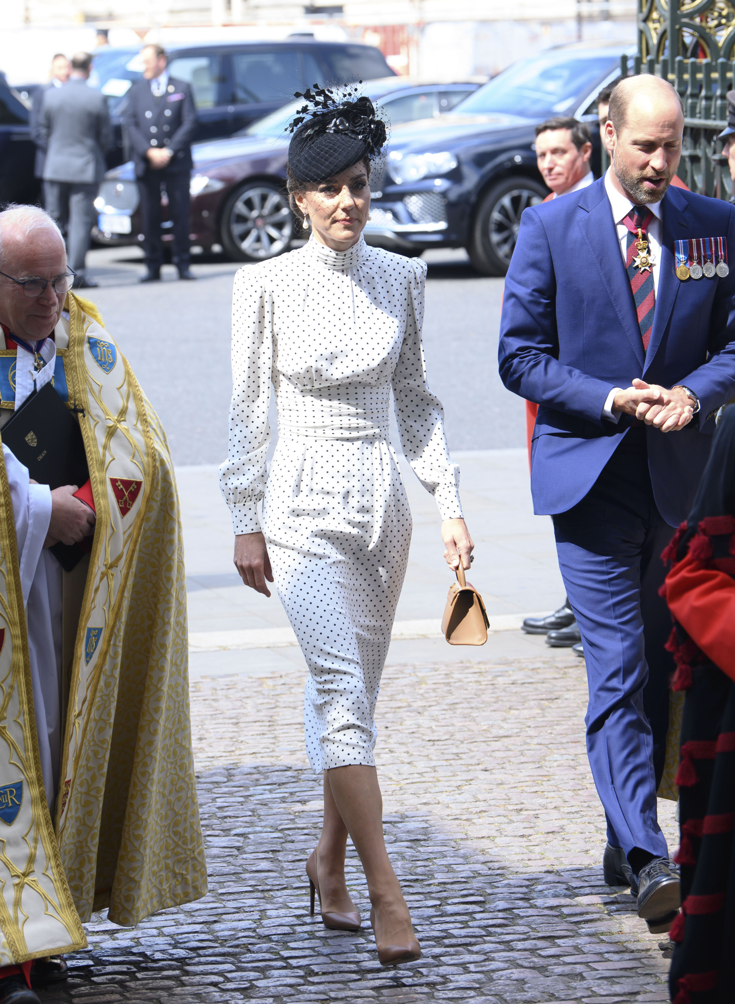 Catherine oli pukeutunut tyylikkääseen pitkähihaiseen mekkoon, jota koristi yksi kevään ja kesän trendikuoseista, nimittäin pallokuosi. Takavuosiltakin tuttu polka dot on tehnyt paluun katukuvaan, ja Catherinen asu todistaa, että se toimii monenlaisissa asuissa ja tilanteissa.