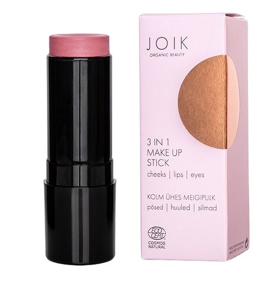 Nimensä mukaisesti JOIK Organic Beauty 3in1 Make Up Stick tarjoaa useamman käyttötarkoituksen. Tuotetta voi käyttää niin poskiin, huuliin kuin luomiin.