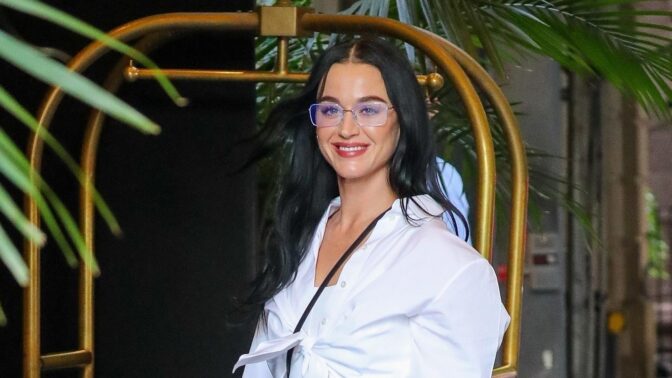 Perry oli pukeutunut rentoihin sinisiin farkkuihin, joiden kaveriksi hän oli valinnut valkoisen topin sekä rennosti vyötäisille sidotun kauluspaidan. Särmää kokonaisuuteen toivat näyttävä vyö sekä aina tyylikkäät loaferit.