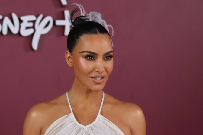 Kardashianin asu koostui rennoista tuulihousuista, kirkkaan punaisesta topista sekä käsillä lepäävästä takista. Näyttävänä yksityiskohtana nähtiin tuulihousujen alta pilkottavat verkkosukkahousut, jotka toivat sporttiseen asuun asennetta ja rock-henkeä.