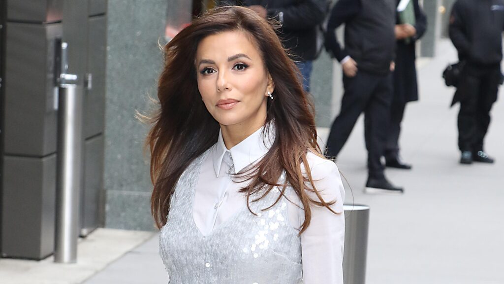 Longoria hyödynsi klassista kikkaa, jolla juhlamekon saa tuotua myös arkipukeutumiseen.