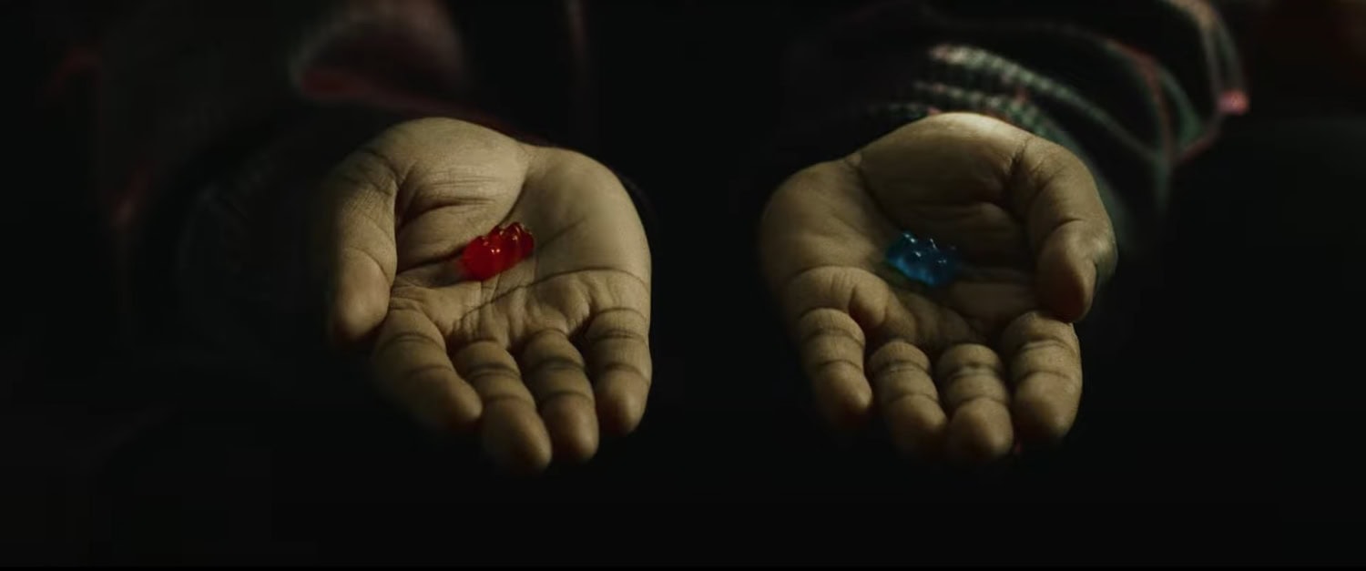 – Tähän sopi idea siitä valinnasta Matrixin punaisen ja sinisen pillerin välillä, missä toinen on totuus ja toisen avulla heräät kodistasi vanhasta elämästäsi. Niin mielestäni se sama tematiikka sopii myös punaiseen ja vihreään nallekarkkin, Gabriel avaa.