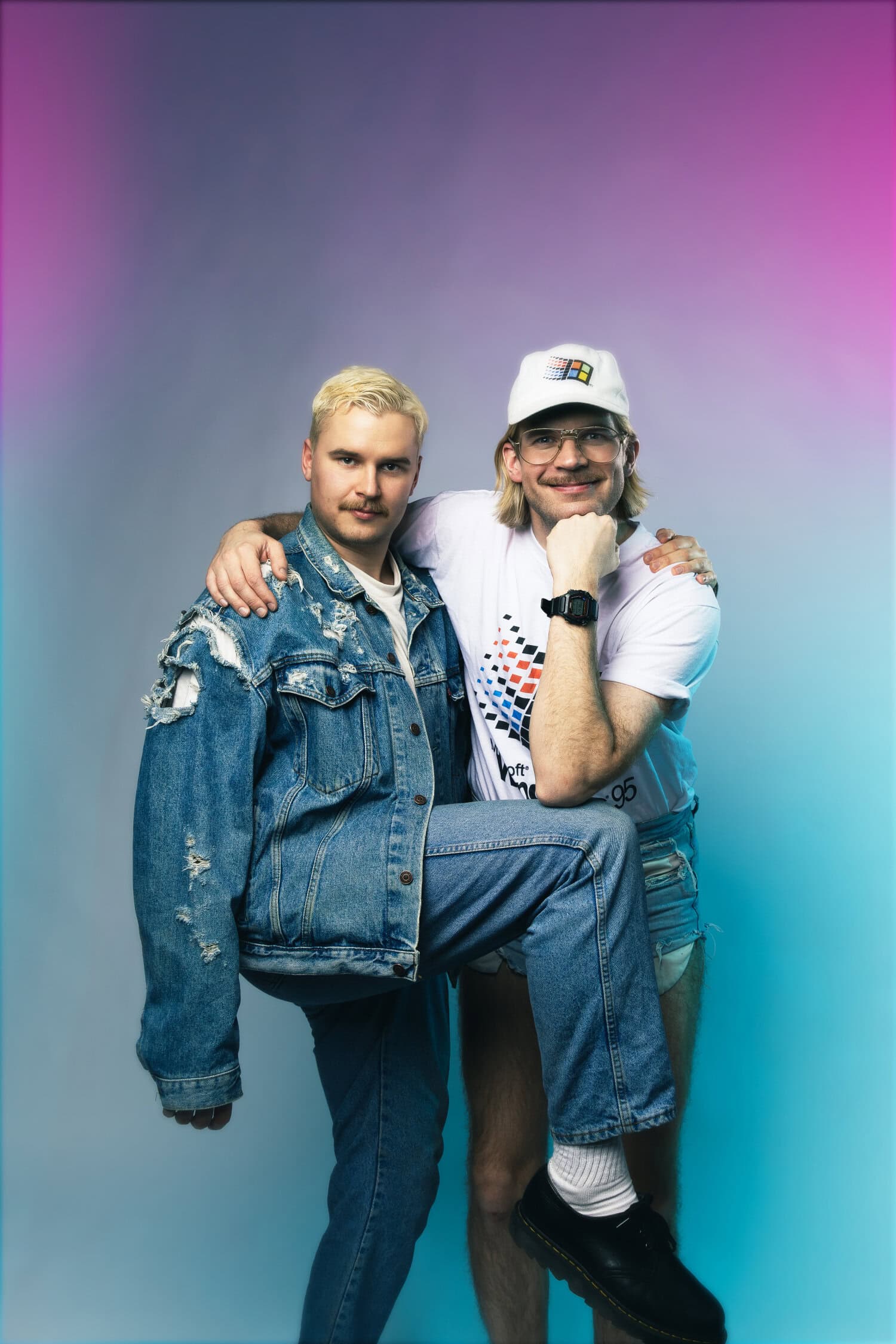 – Jussi Roine sävelsi No Rules -biisin, keksi sen suihkussa. Sitten hän löysi Henrin ja Henri näpytteli tietokoneella pakettiin ja menimme studiolle. Ollaan molemmat tällaisia musanörttejä niin fiilisteltiin vain soittimia ja jaettiin softia keskenämme. Sitten kun tieto shortlistille pääsystä tuli, olimme että o-ou, nyt mennäänkin sitten kaksisteen. Toivottavasti meillä synkkaa. Oli ensimmäiset tanssitreenit ja siellä tää rakkaus kohtasi, kertoo Keisteri.