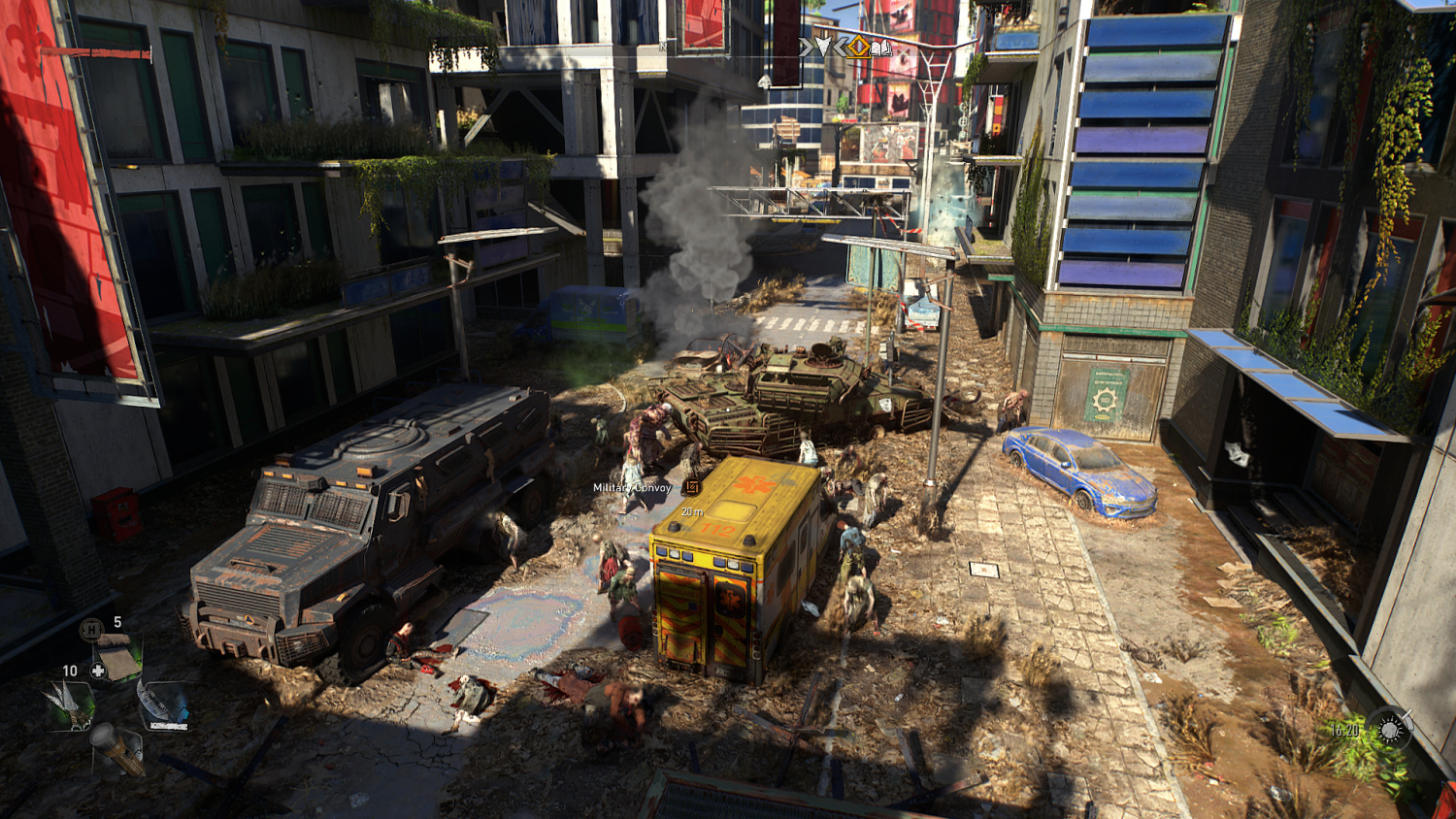 Rakennukset ovat päiväsaikaan täynnä uinuvia epäkuolleita, mutta yöaikaan zombiet täyttävät kadut erikoiskykyjä omaavien kumppaniensa kanssa. Nämä spessumonsterit osaavat vihollistyypistä riippuen muun muassa hälyttää lajitovereitaan paikalle, räkiä paskaa pelaajan niskaan tai mörssätä tämän kuoliaaksi kädessään olevalla betoninuijalla. Varsinkin pelin vaikeimmalla tasolla jokainen vihollinen on vaarallinen ja zombielaumoja ei ihan tuosta vain lanata matalaksi. Yöt ovat toki muutenkin vaarallisempaa aikaa rymytä menemään, sillä Aiden on myös saanut tartunnan zombieksi muuttavasta viruksesta, ja pimeässä kulkiessa juoksee jatkuvasti ajastin, jonka kuluessa loppuun pelaaja muuttuu epäkuolleeksi. Ajastimen saa nollattua UV-valossa seisoskellessa, mutta se kestää ainoastaan muutaman minuutin, joten toisinaan kellareissa rymytessä tulee kiirus juosta ulos ja valonsäteiden suojelevaan vaikutukseen. Samalla pimeyden kätköissä kulkeminen kuitenkin kannattaa, sillä sieltä löytyy parempaa varustusta pelaajien iloksi. Kaksipiippuinen miekka!
