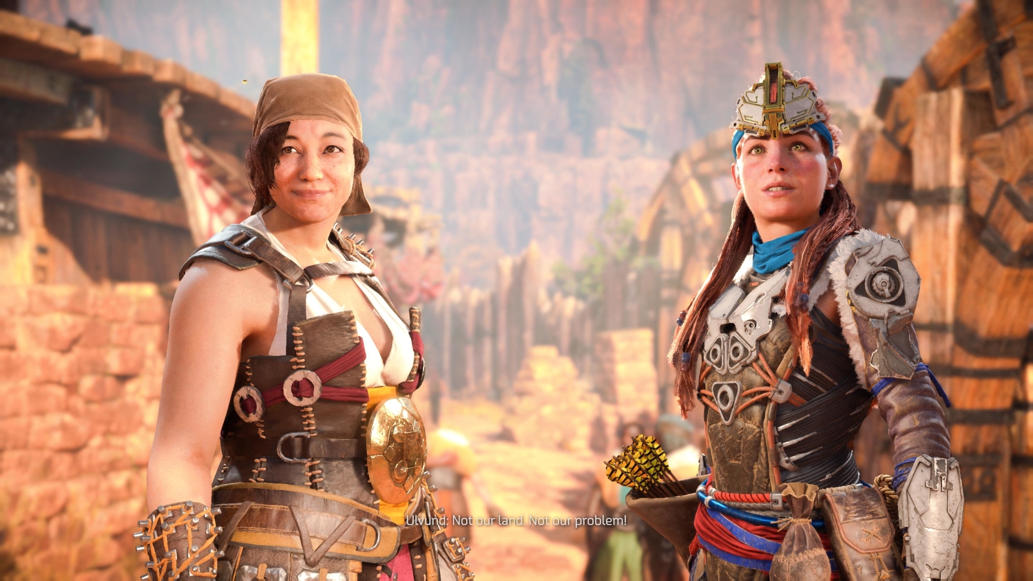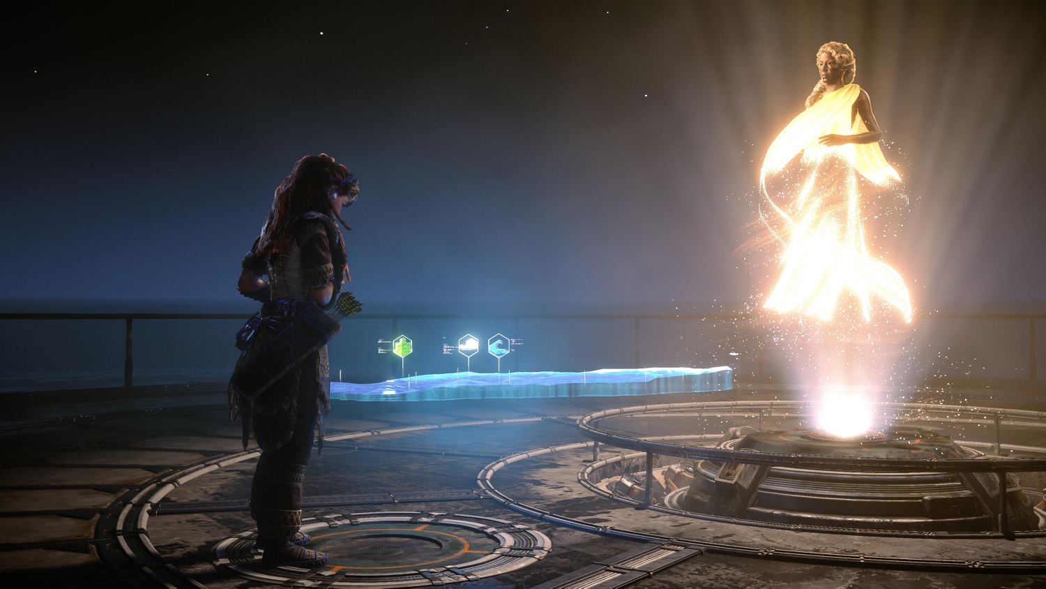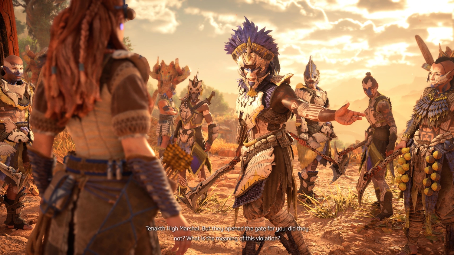 Zero Dawnin hyvin kirjoitetun kasvutarinan myötä karaistuneen, aikuisemmaksi ja itsevarmemmaksi kasvaneen, Aloyn tarina lähtee Forbidden Westissä liikkeelle siitä, mihin se edellisellä kerralla jäi. Niille, jotka ovat ehtineet vuosien vieriessä unohtaa Horizonin tarinan, tarjoillaan lähes pelin startiksi lyhyttä keskustelumuotoista “tapahtui edellisessä osassa” -tyylistä recappia ensimmäisestä pelistä tuttujen tärkeiden hahmojen kanssa. Kertaus on myös tarpeen, sillä ainakin itse olin jo autuaasti unohtanut viisi vuotta sitten julkaistun Zero Dawnin juonenkulusta tärkeitäkin elementtejä, ja Forbidden West viittaa tarinassaan jatkuvasti pelisarjan edellisen osan tapahtumiin.