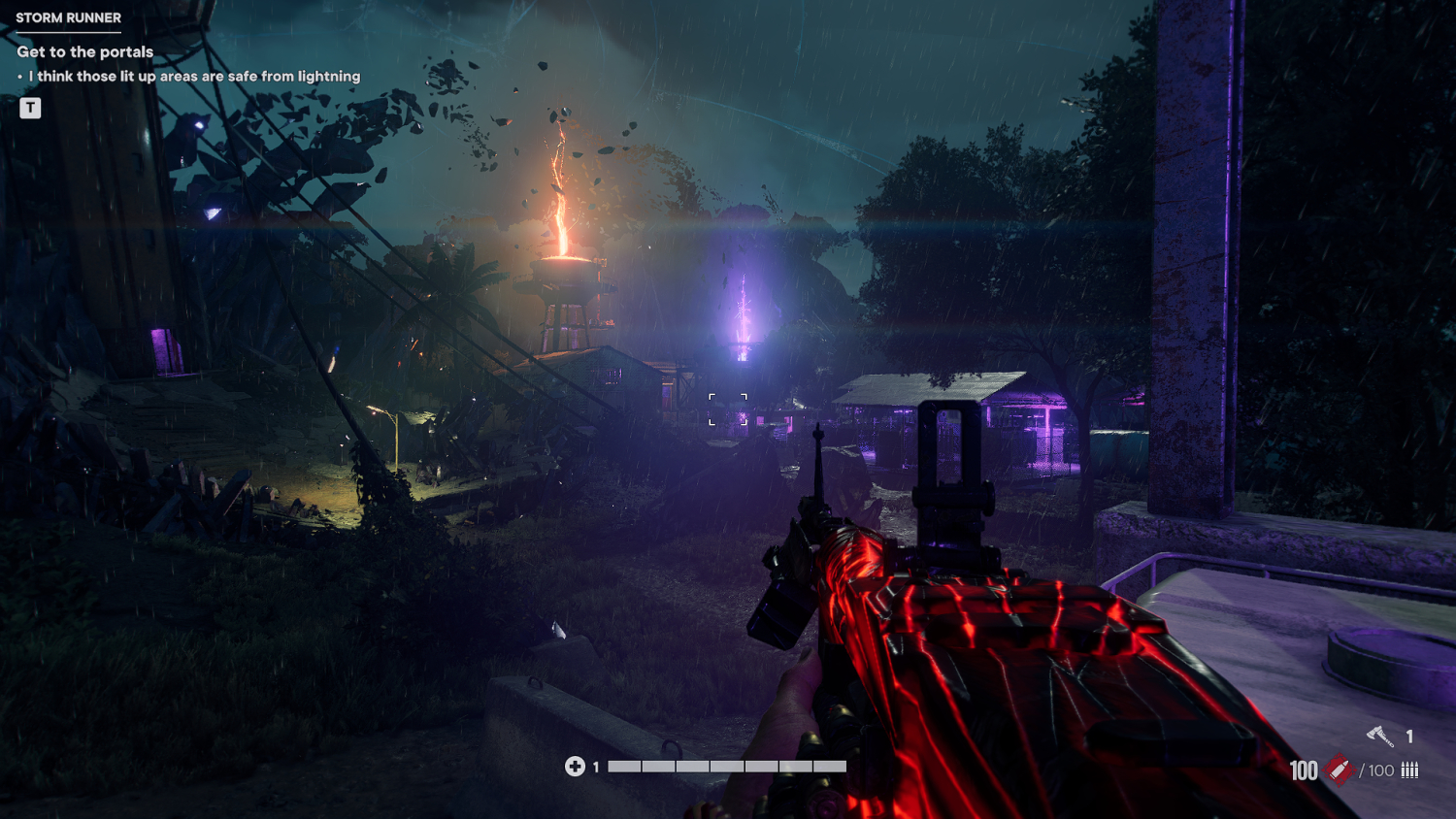 Aseiden suhteen on haettu vaihtelua punaisen ja sinisen värisen energian muodoilla, joita pelaaja joutuu vaihtelemaan nappia painamalla tämän tästä. Sinisellä energialla varustetut ammukset tekevät vahinkoa vain sinisiin ja punaiset punaisiin vihollisiin. Ammusten vaihtaminen on jatkuvaa hupia, joka jarruttaa pelin flowta entisestään. Toisaalta taas ilman tätä ammusjonglöörausta peli olisi entisestään tylsempi, joten ratkaisun ymmärtää kyllä täydellisesti. Muutoin aseistus on varsin tuttua ja turvallista pistooli-rynkky-haulikko-osastoa.