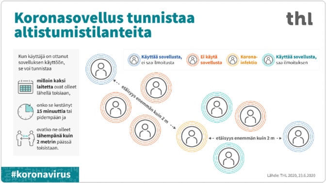 Sovelluksen avulla ihmiset voivat itse vaikuttaa koronaviruksen leviämisen estämiseen ja suojella omaa ja läheistensä terveyttä. Sovelluksen avulla on tavoitteena nopeuttaa virukselle altistuneiden tavoittamista ja tartuntaketjujen katkaisemista.
