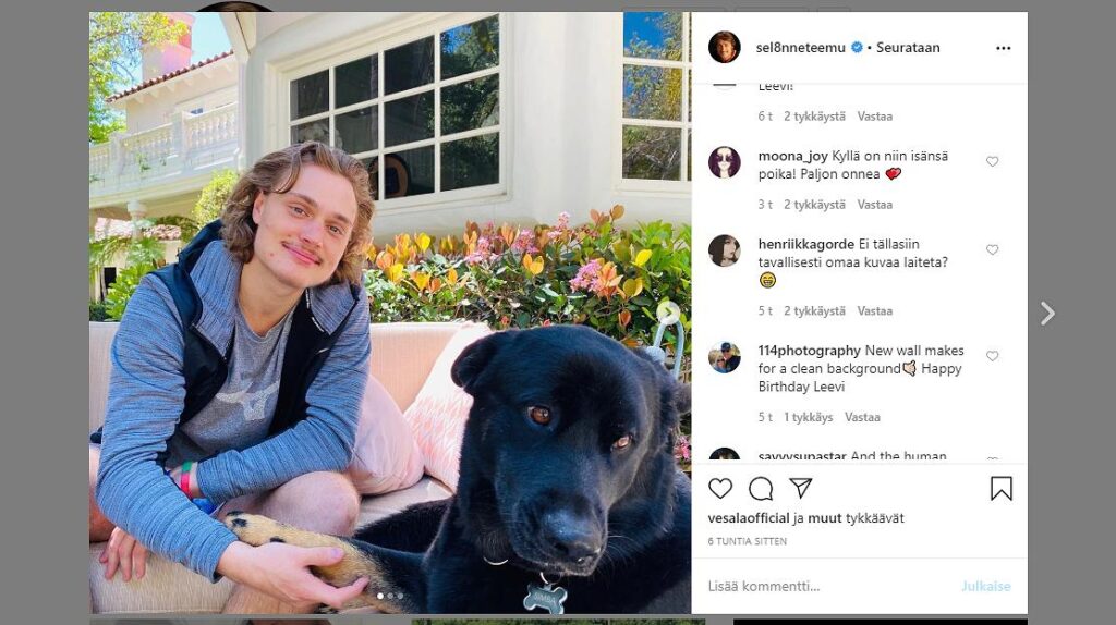 Legendaarinen jääkiekonpelaaja Teemu Selänne, 49, julkaisi Instagram-tilillään kuvan Leevi-pojastaan. Mies onnittelee Leeviä julkaisussa 20-vuotissyntymäpäivän johdosta ja lähettää rakkautta pojalleen.