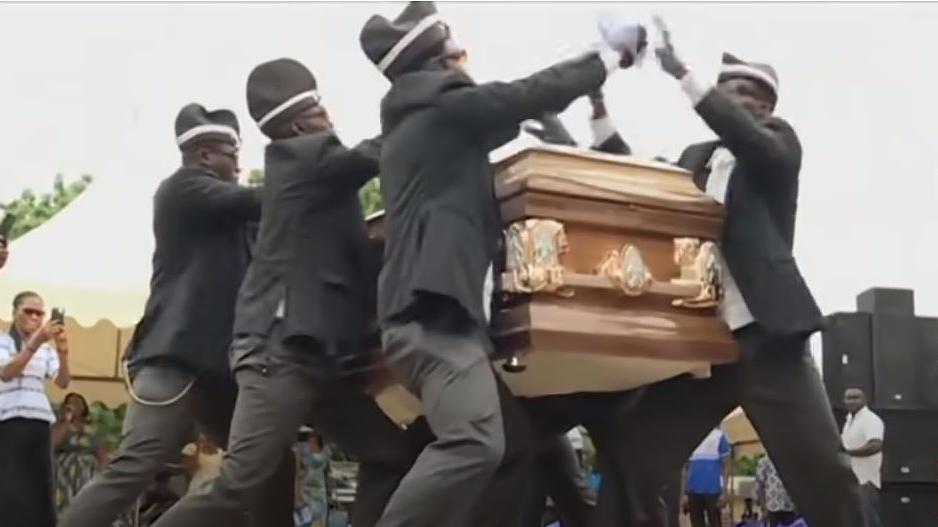 Video kuudesta tanssivasta arkunkantajasta on puolestaan lähtöisin Ghanasta. Kyse on ammattiarkunkantajista, jotka keksivät lisätä koreografiaa kantamiseen. Tanssimisesta veloitetaan ekstraa. Ryhmä tuli ensimmäisen kerran julkisuuteen vuonna 2017, kun BBC uutisoi asiasta. Meemeihin editoitu tanssi on peräisin juuri tuolta videolta.