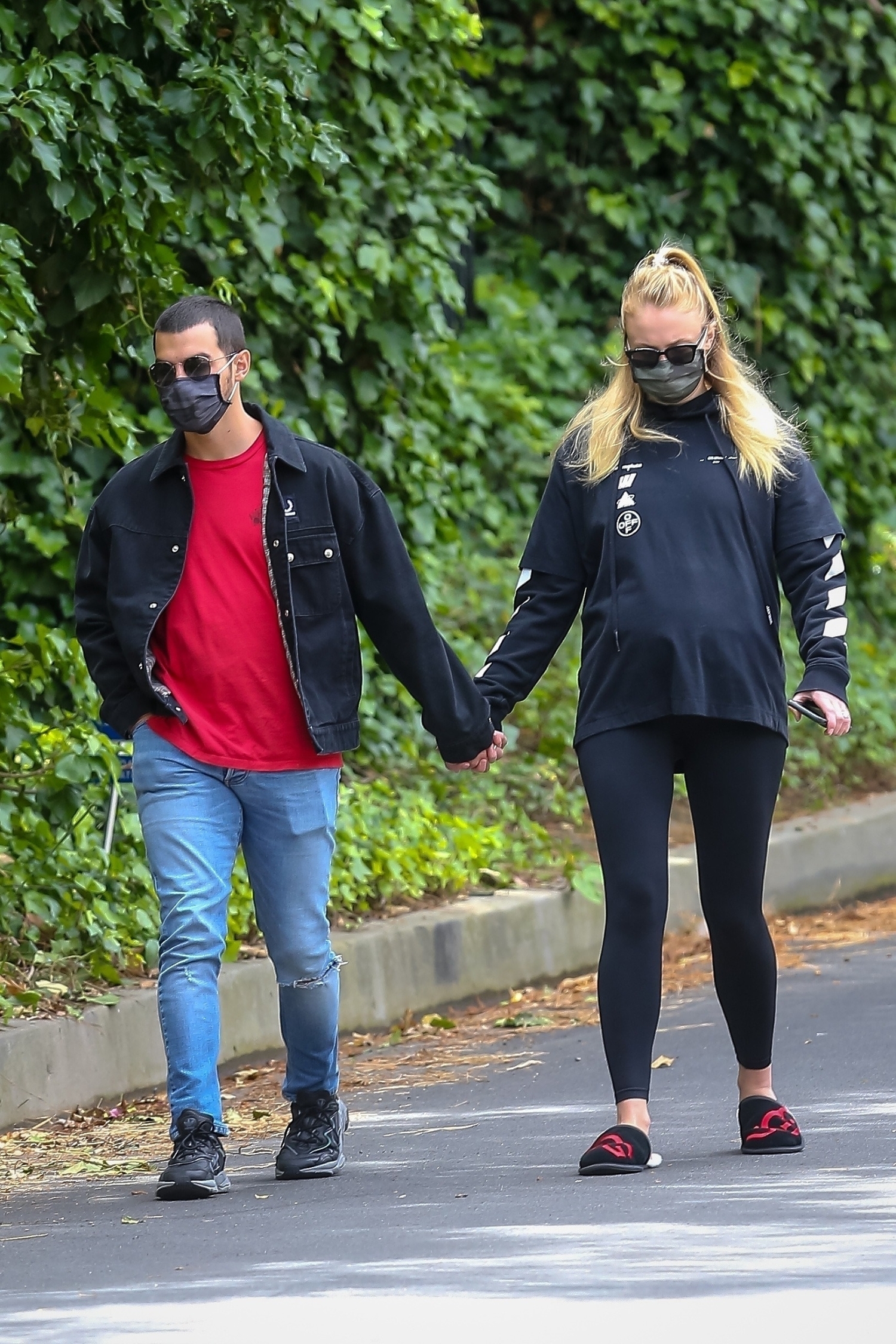 Nyt kuitenkin Hollywood Life -lehti raportoi kuvista, joissa Turner ja hänen muusikkomiehensä Joe Jonas, 30, kävelevät yhdessä käsikädessä kasvosuojat yllään. Kuvista huomaa lehden mukaan selvästi Turnerin pullistuneen vauvavatsan.