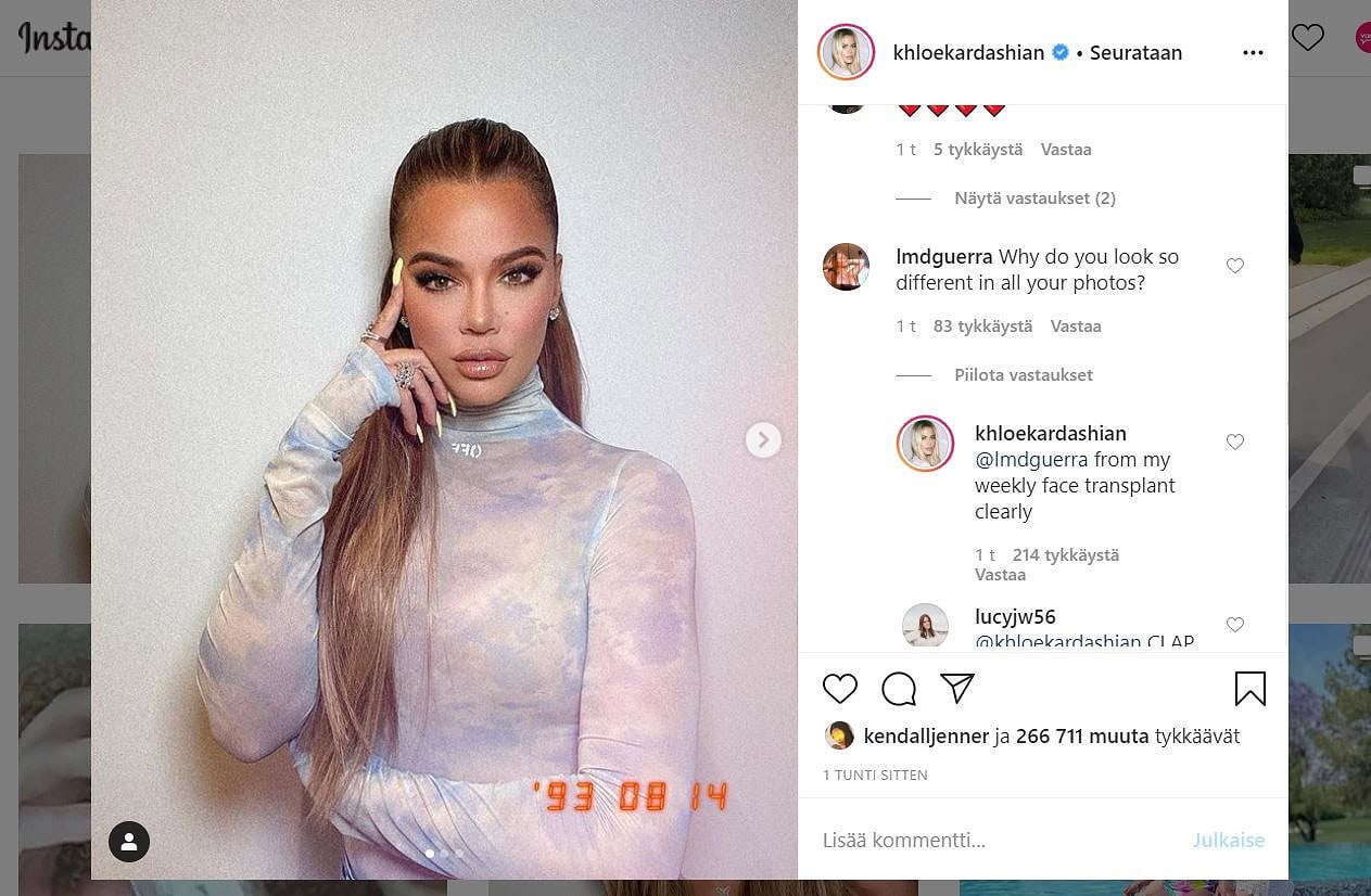”Kuka sinä olet ja missä Khloé on?”, kommentoi muun muassa eräs Instagram-käyttäjä kuvaa.