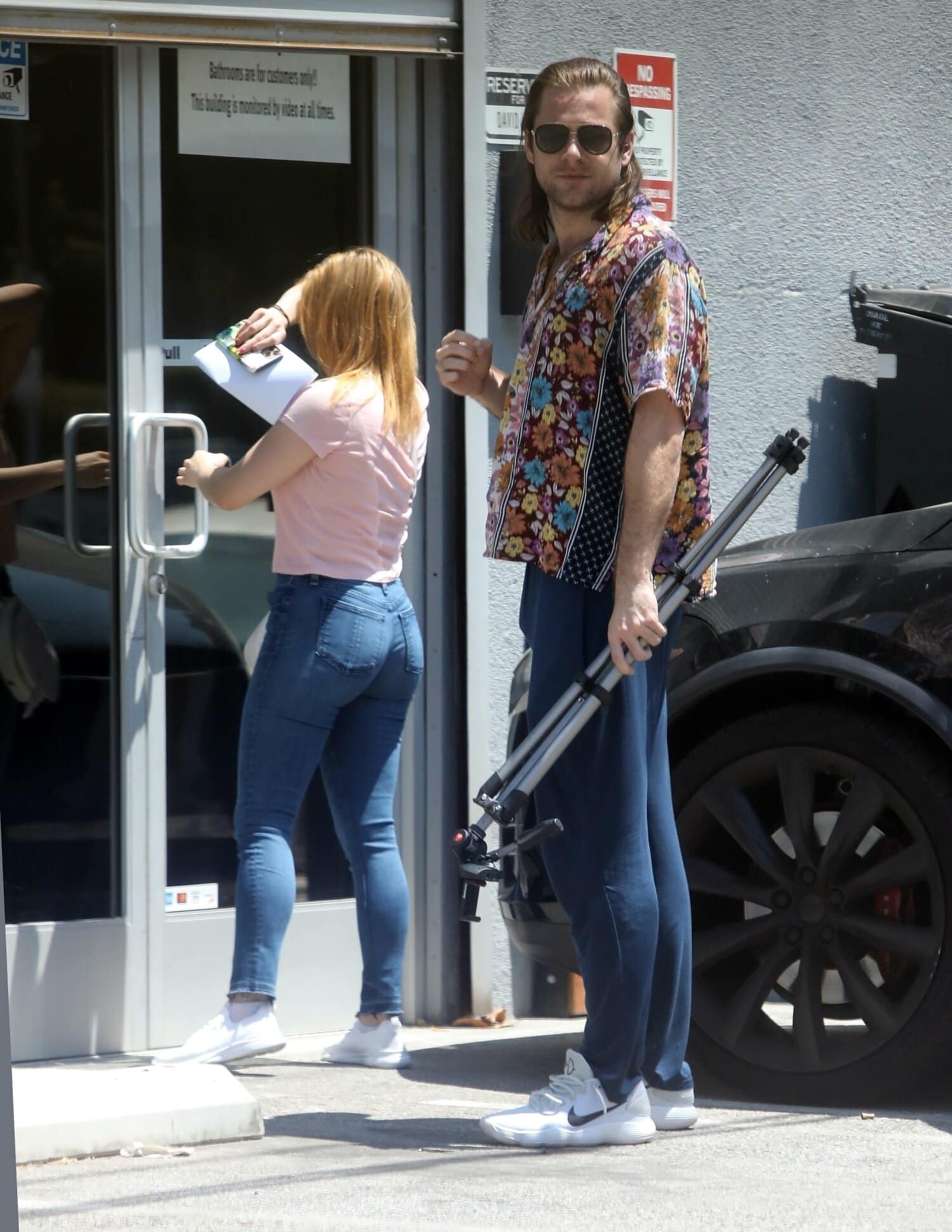 WInter oli sonnustautunut timmiä vartaloa korostaviin farkkuihin sekä vaaleanpunaiseen t-paitaan. Benward taas nautti kuumasta kesäpäivästä kukkapaidassa ja collegehousuissa.