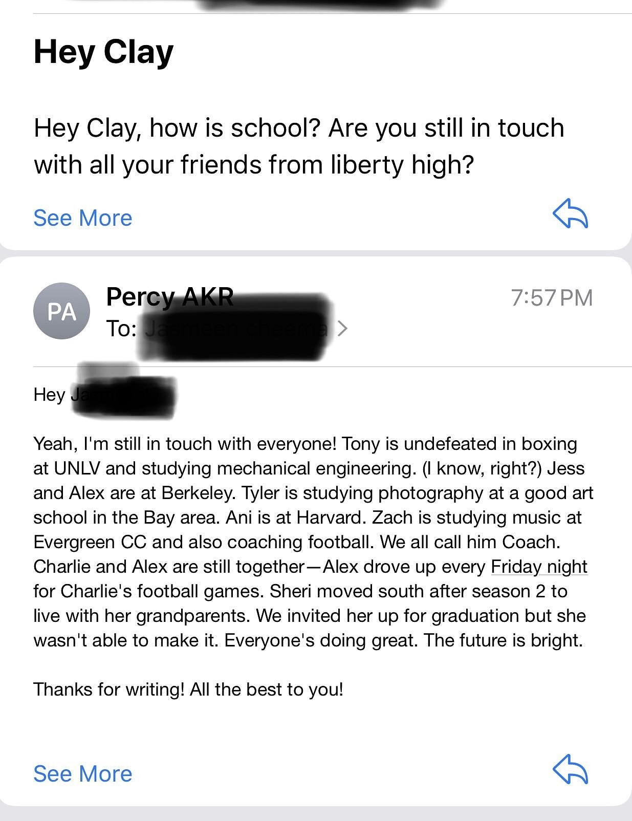 Sarjan viimeisen jakson katsomisen jälkeen monet fanit ovat saaneet päähänpistoksen laittaa sähköpostia osoitteeseen, jonka Clay Jensen on luetellut jaksossa. Se mikä on kuitenkin tullut täytenä yllätyksenä on se, että sähköpostista on tullut oikeita vastauksia fanien lähettämiin sähköposteihin.