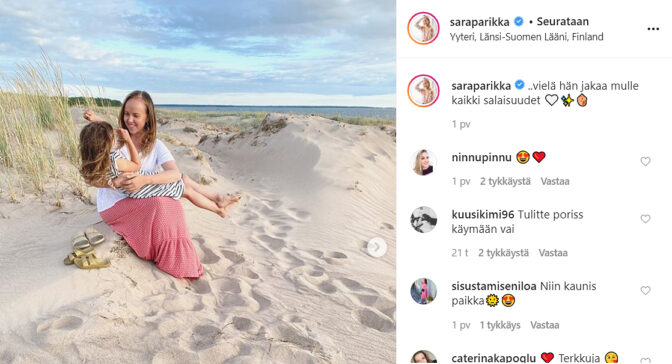 ”Veikkaan, et tää on yks kesän kivoimmista viikonlopuista!” Sara Parikka kirjoitti hiekkasärkiltä otetun kuvan yhteydessä.