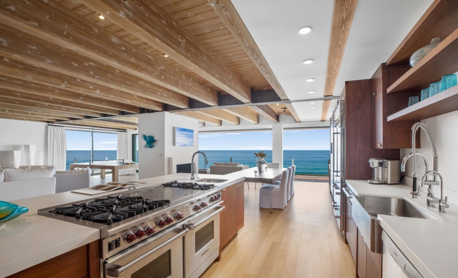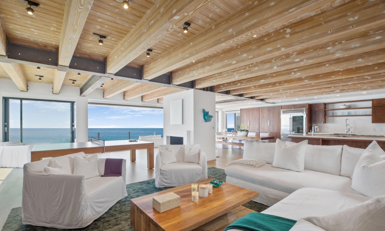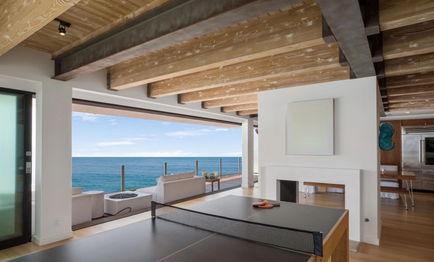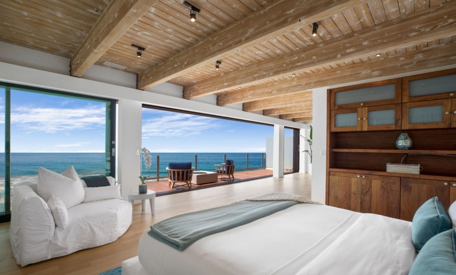 Rantaviivalla sijaitsevasta huvilasta löytyy muun muassa oma uima-allas, elokuvateatteri ja upea, suuri vaatehuone.