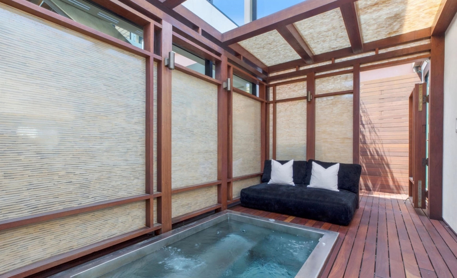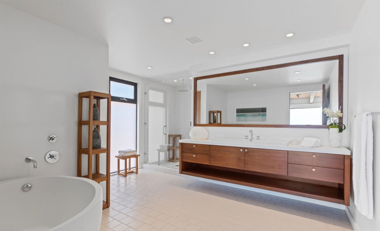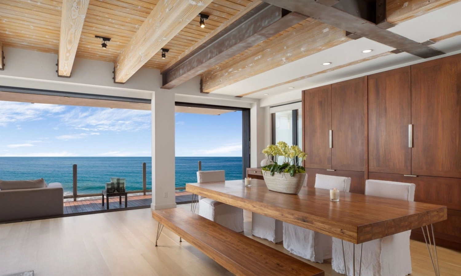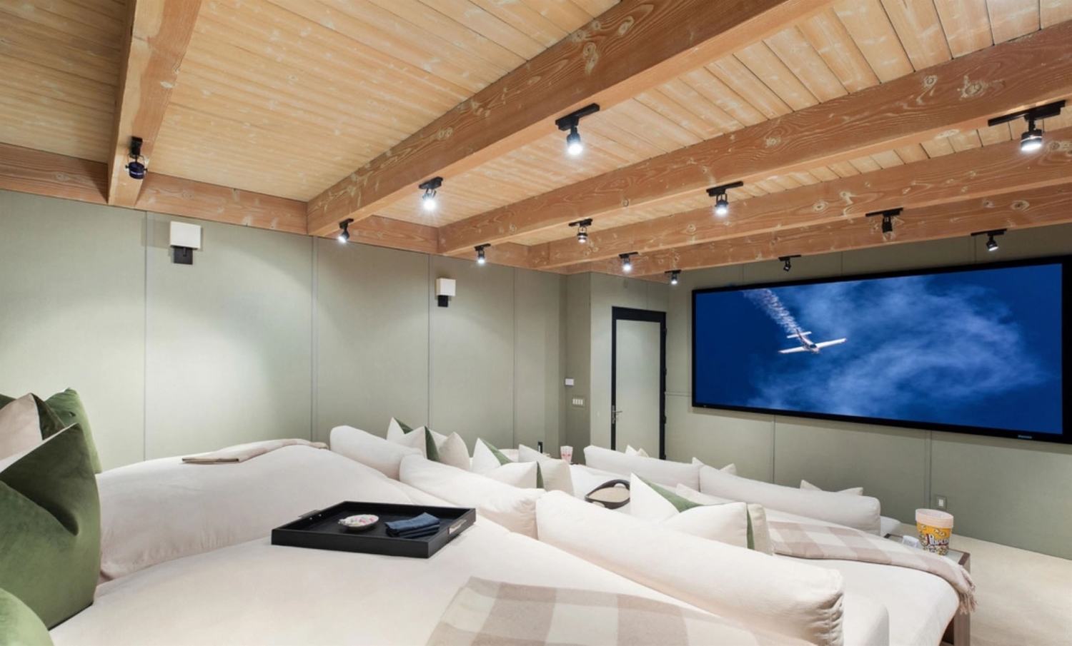 Rantaviivalla sijaitsevasta huvilasta löytyy muun muassa oma uima-allas, elokuvateatteri ja upea, suuri vaatehuone.