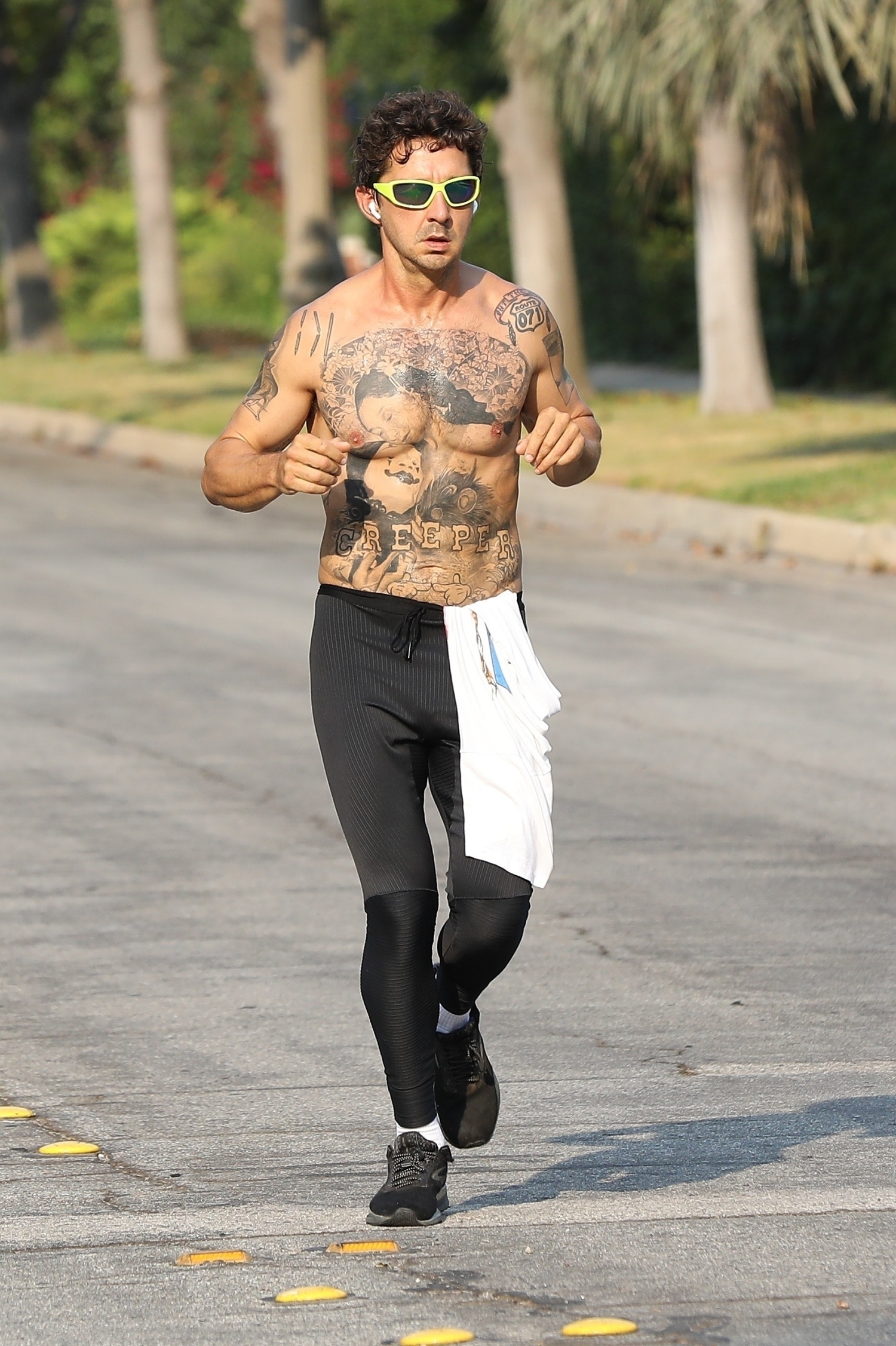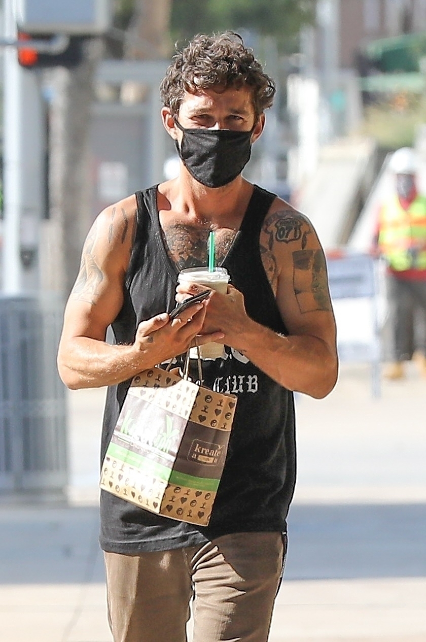 Kuva paljastaa näyttelijän runsaat tatuoinnit, päivettyneen ihon ja treenatun vartalon. Viime aikoina paparazzit ovat bonganneetkin yhä useammin 34-vuotiaan näyttelijätähden lenkillä. LaBeouf on myös kasvattanut hiuksiaan kevään ja kesän aikana.
