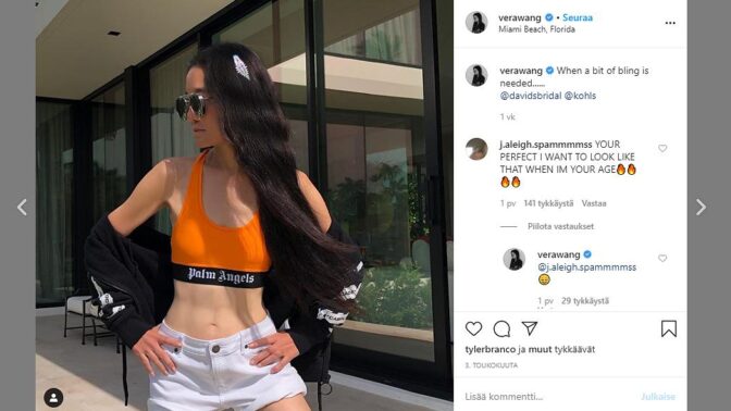 Lue myös: 70-vuotiaan Vera Wangin kuva sai somen sekaisin: ’Haluan sinun vatsalihaksesi!’