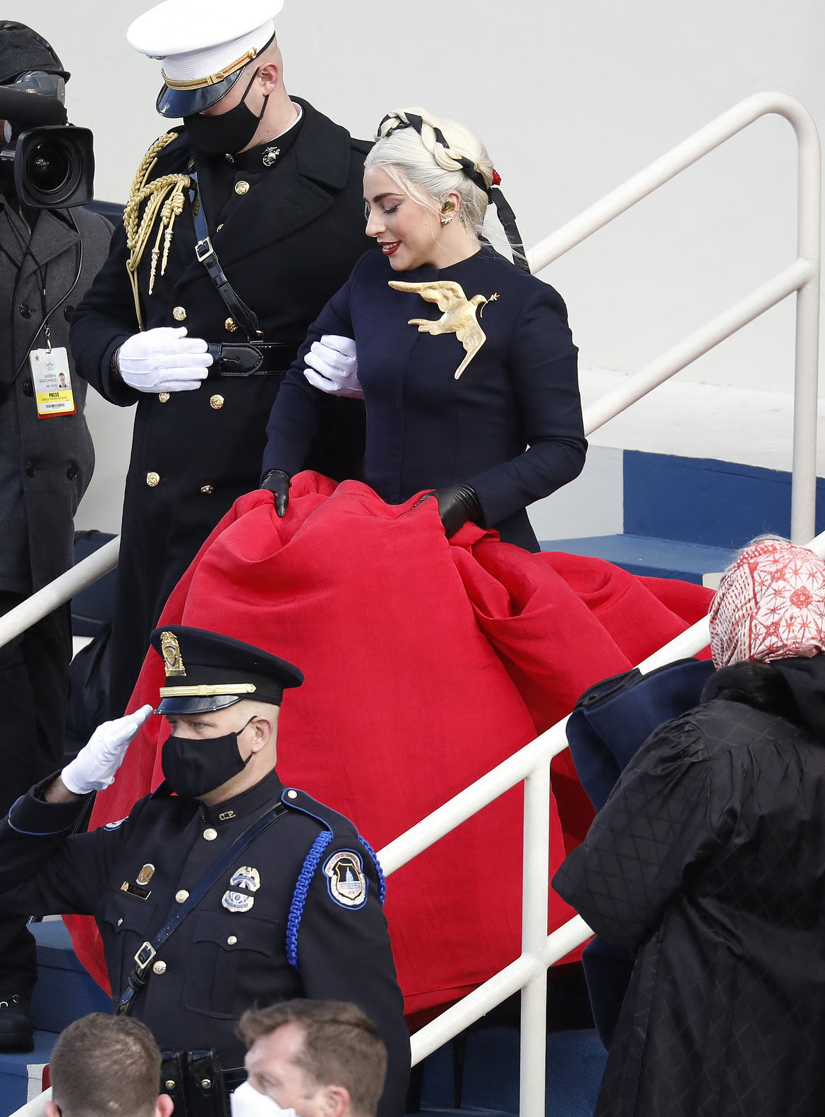 Lady Gaga, 34, lauloi Yhdysvaltain kansallislaulun presidentti Joe Bidenin virkaanastujaisissa keskiviikkona. Naisen upea tulkinta The Star-Spangled Bannerista otettiin riemuiten vastaan sosiaalisessa mediassa, ja myös naisen tyyliä on ylistetty.