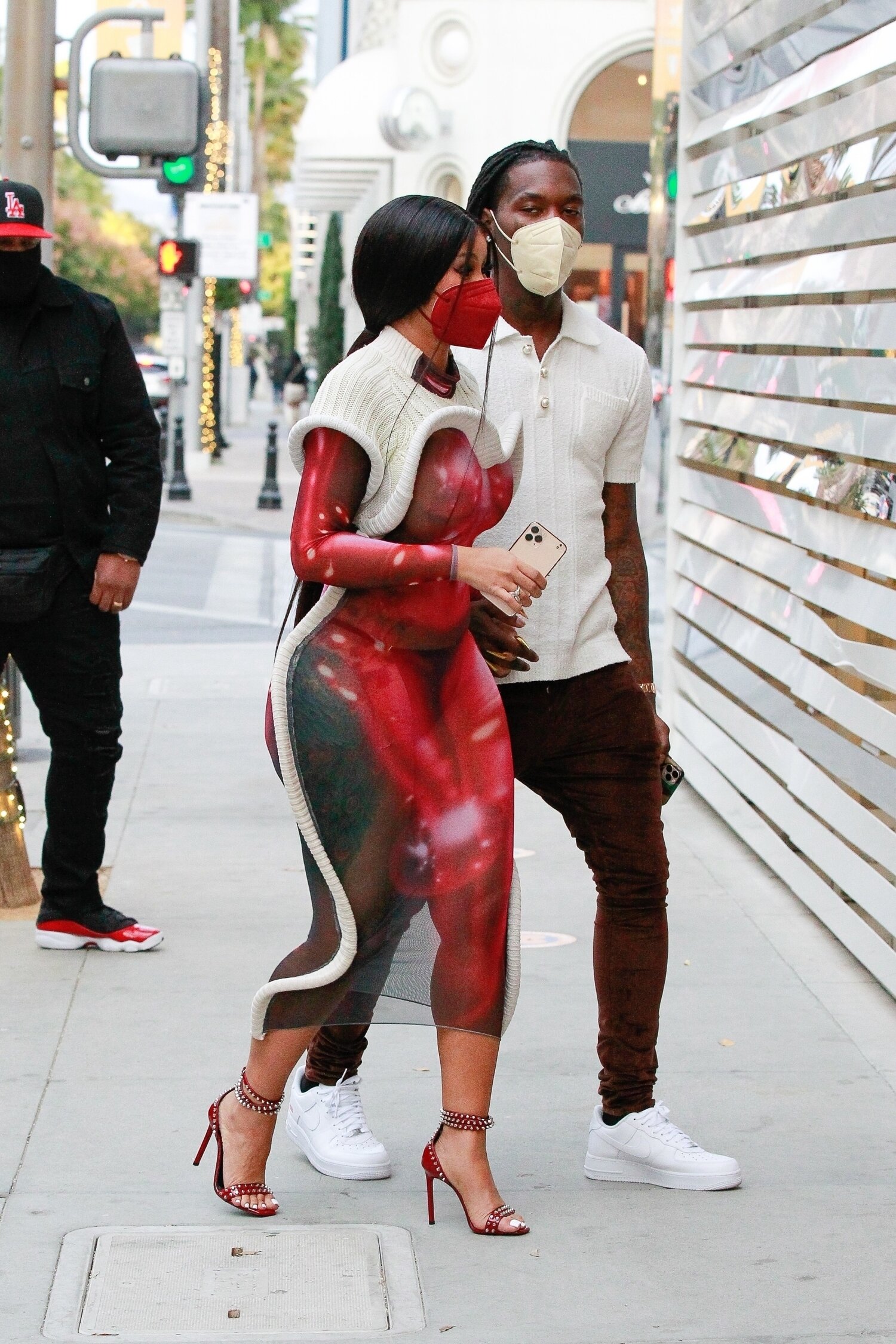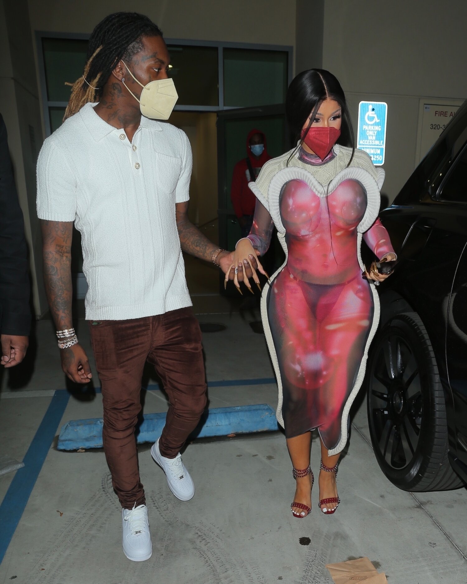 Cardi nähtiin Los Angelesin kaduilla yhdessä rakkaansa Offsetin kanssa. Iltaa varten Cardi oli pukeutunut kokonaan läpikuultavan mekkoon, jonka alle hän oli sujauttanut stringit. Animetyylinen asu sisälsi kudottuja yksityiskohtia, jotka loivat asulle eräänläiset ääriviivat.