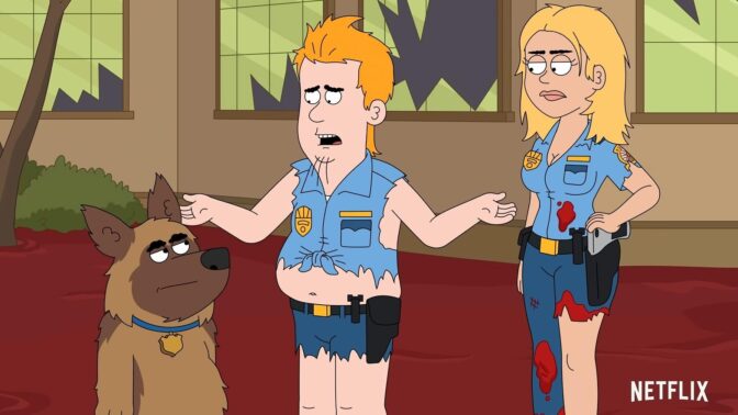 Netflix julkaisi vuonna 2018 hämmentävän aikuisille suunnatun animaatiosarjan Paradise PD. Sarjassa sensuuripensseli ei juuri heilu ja sillä ei ole oikeastaan mitään rajoja, joten mitä vain voi tapahtua. Paradise PD on kielletty alle 16-vuotiailta.