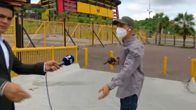 Diego Ordinola -niminen toimittaja oli nimittäin juontamassa suoraa urheilulähetystä paikallisen stadionin edessä, kunnes yhtäkkiä aseella varustettu mies ilmestyi kuvaan ja ryösti sekä toimittajan että kuvausryhmän.