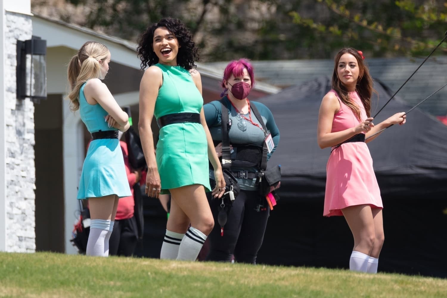 Nyt sarjan kuvauksista on vuotanut ensimmäisiä kuvia, joissa kolmikko nähdään tositoimissa. Myös animaatiosta tutut supersankarien värit ovat mukana, eli vihreä, pinkki ja sininen.
