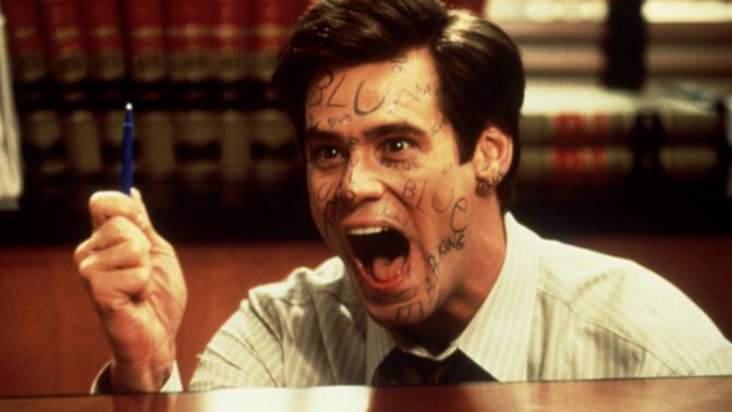 Elokuvan tunnetuin kohtaus on Fletcherin taistelu kynän kanssa, kun hän yrittää testata valehtelimiskykyään. Tilanne eskaloituu, kun hän yrittää sanoa sinisen kynän olevan toisen värinen. Lopulta sekasorron keskellä mies makaa kaikkensa antaneena työhuoneessaan kasvot täynnä kirjoitusta. Miehen kasvoilla lukee monessa kohtaa ”blue”. Tarkkasilmäisimmät ovat kuitenkin huomanneet, että leuassa lukee ”B.B. King” , joka viittaa rakastettuun blues-tähteen.