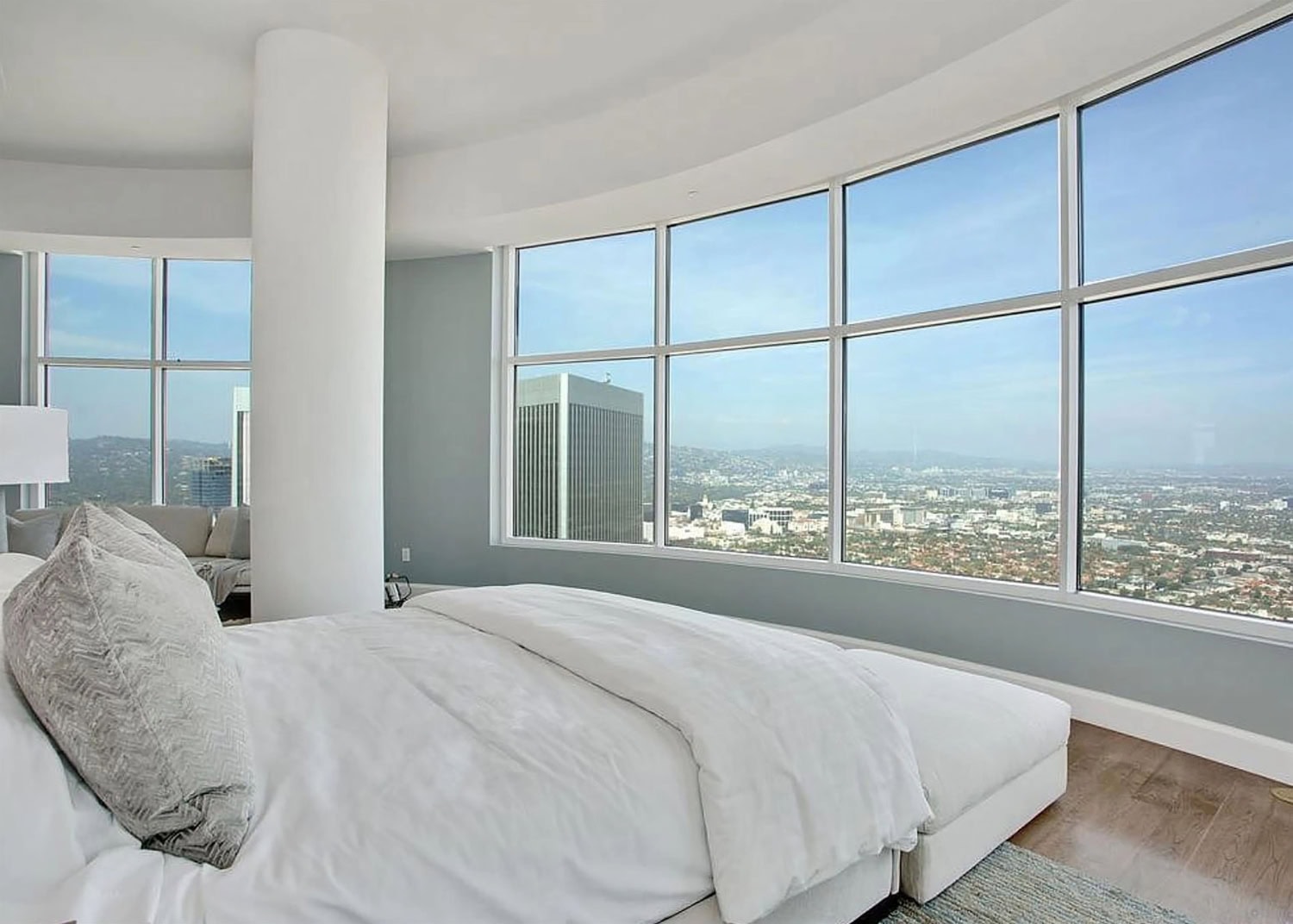 Huoneistoon kuuluu kuusi eri makuuhuonetta ja neljä kylpyhuonetta. Joka huonetta kiertävät valtavat ikkunat ja upeita maisemia voi ihastella kaikkialta.
