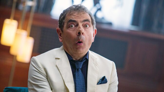 Sillä hetkellä yksi henkilökunnasta käänsi kannettavan tietokoneensa Emmerdale-tähden puoleen ja osoitti Rowan Atkinsonia.