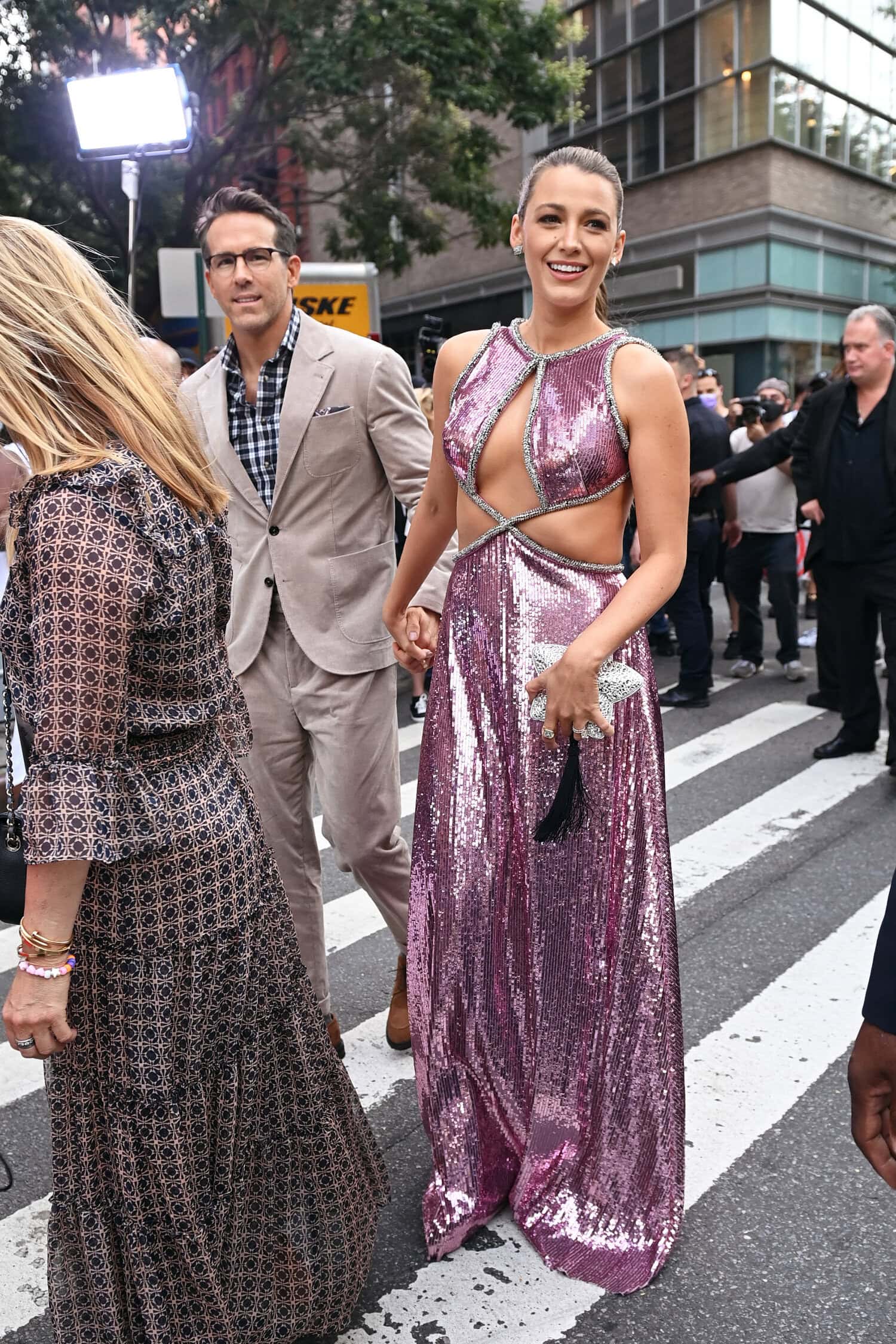 Reynolds oli sonnustautunut tyylikkääseen vaaleaan pukuun ja Lively säkenöi kimaltelevassa ja avoimessa mekossa. Livelyn asukokonaisuuden kruunasivat säihkyvät korvakorut sekä pieni käsilaukku.