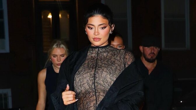 Jenner kuvattiin läpikuultavassa pitsisessä haalariasussa, joka paljasti niin rintaliivit kuin alushousutkin. Haalarin ylle Jenner oli valinnut jakkumaisen pusakan.