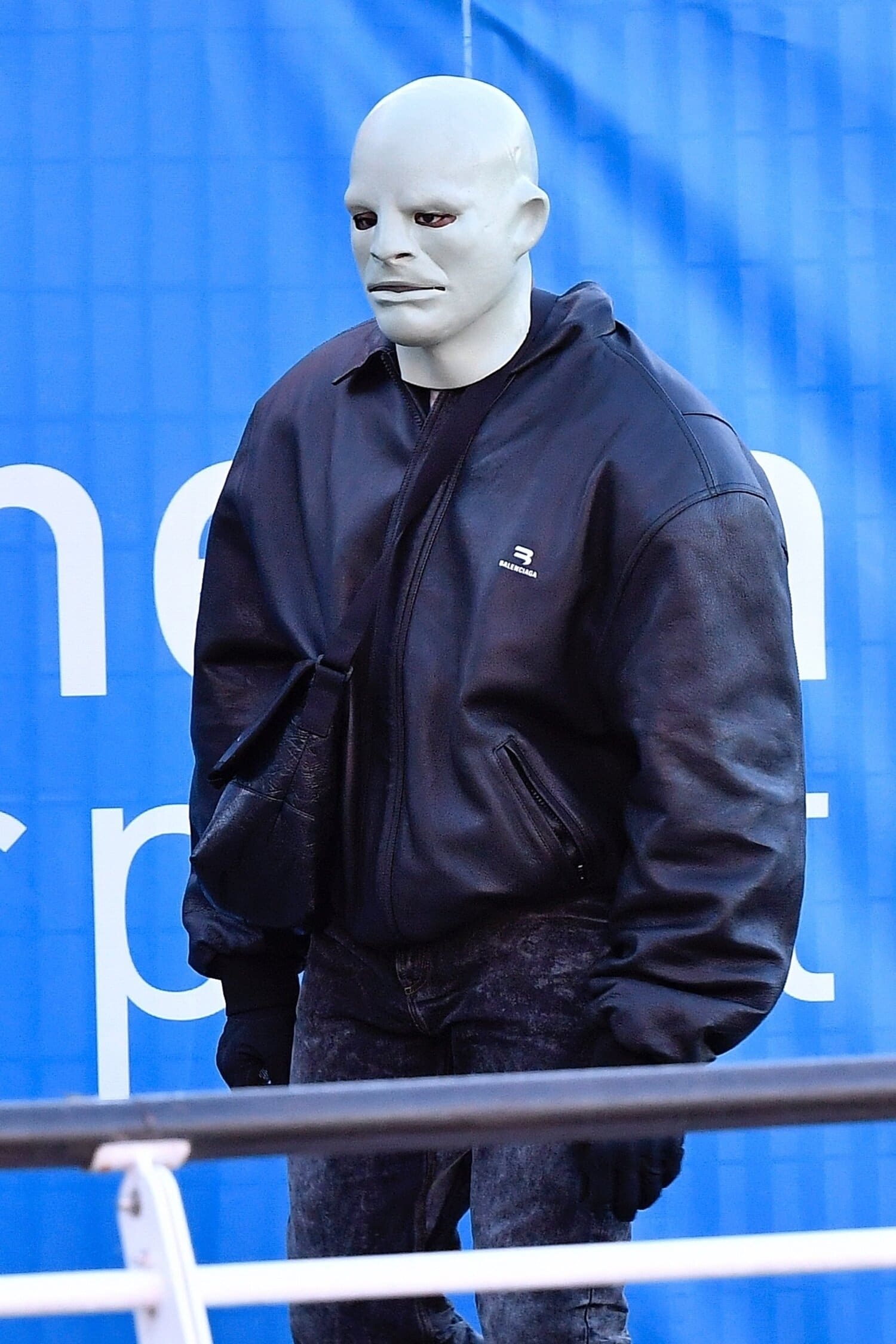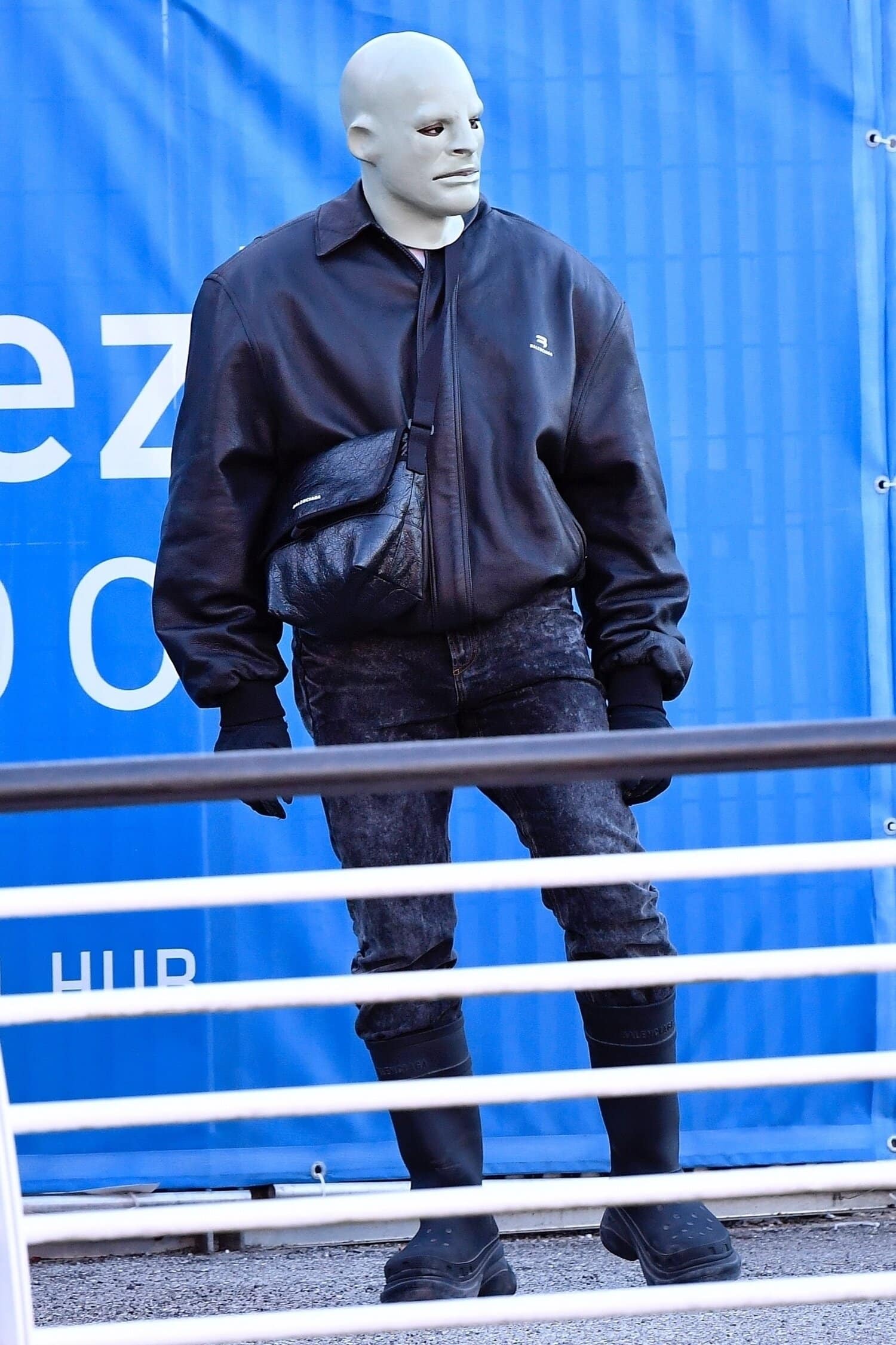 Samansuuntainen tyyli nähtiin miehen yllä myös Italiassa, jossa hänet kuvattiin kokonaisuudessa, joka on kuin suoraan kauhuelokuvasta. West oli pukeutunut mustaan Balenciagan nahkatakkiin sekä farkkuihin. Vaatteiden seuraksi hän seuraksi oli valinnut valkoisen koko pään peittävän naamion.
