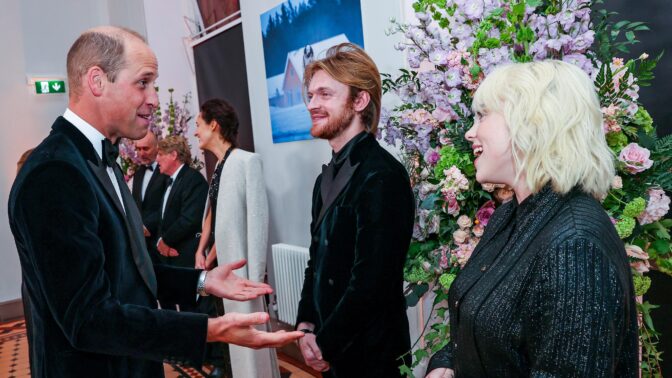 Laulaja Billie Eilish, 19, ja hänen veljensä Finneas O’Connel, 24, tapasivat prinssi Williamin ja herttuatar Catherinen uuden 007 No Time To Die -elokuvan ensi-illassa. Eilish esittää uutuuselokuvan tunnuskappaleen.