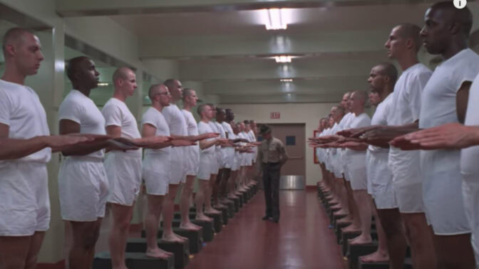 Vuonna 1987 valmistunut Vietnamin sodasta kertova Full Metal Jacket muistetaan erityisesti elokuvan ensimmäisen puoliskon traagisesta koulutusjaksosta, jossa itsekin Vietnamin sodassa palvellut R. Lee Ermey näytteli Golden Globe -ehdokkuuden arvoisesti kovasanaista vääpeli Hartmania.