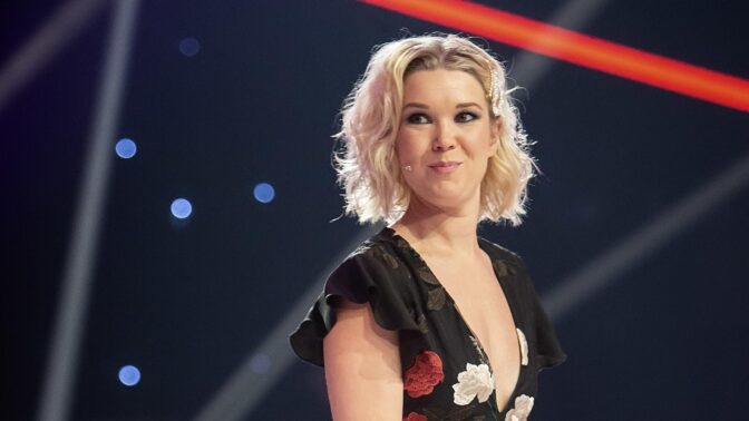 – Tuolla meidän pikkuinen voi temmeltää, juontaja jatkaa.