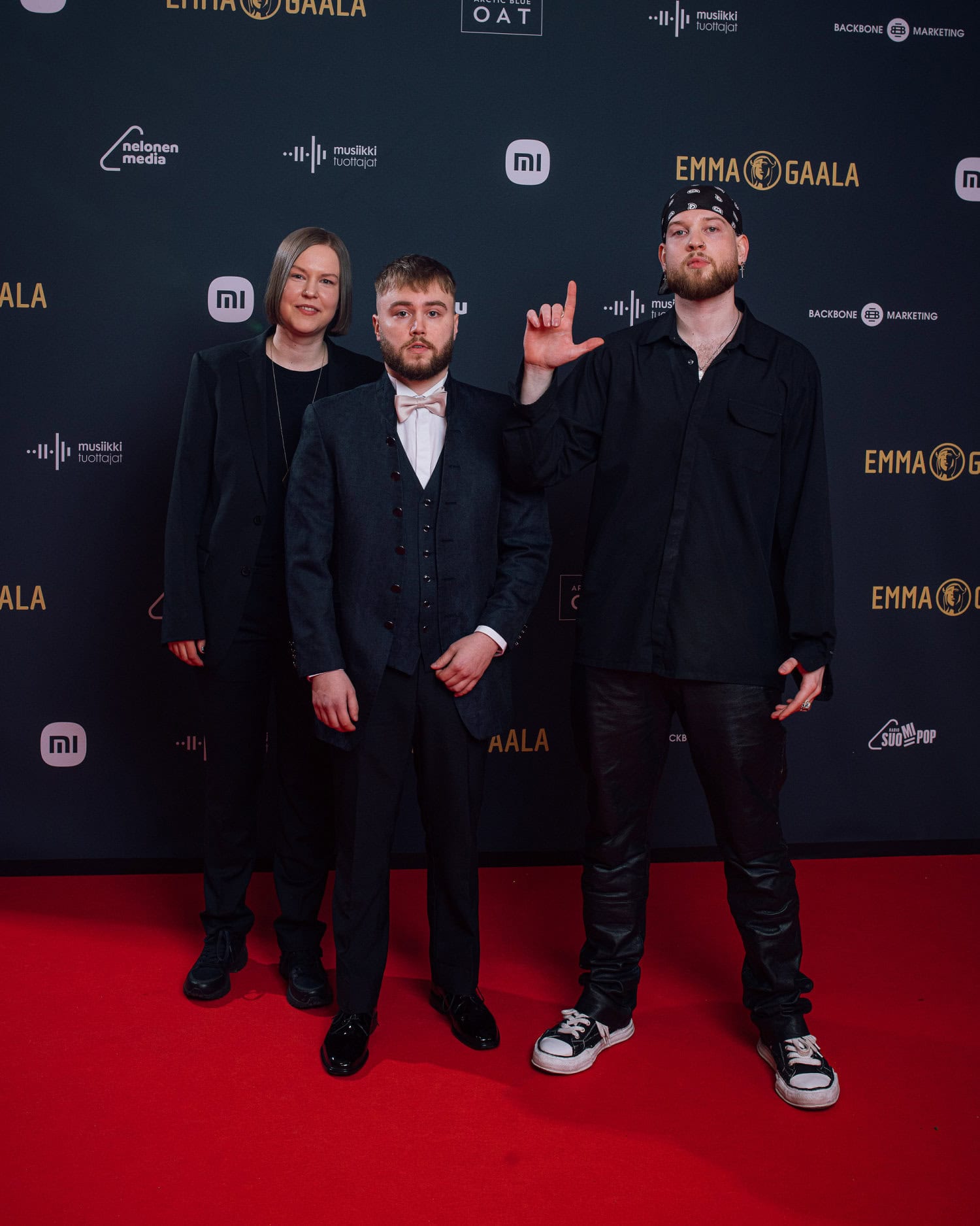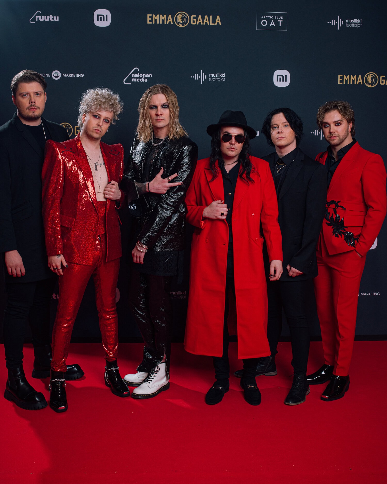 Esimerkiksi Erika Vikman oli sonnustautunut avonaiseen säihkyvään tummaan asuun ja viisumenestystä niitanneen Blind Channelin jäsenet viettävät iltaa sekä punaisissa että mustissa puvuissa.