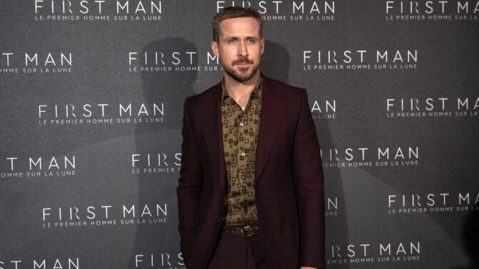 Gosling oli pukeutunut samankaltaiseen asukokonaisuuteen: värikkääseen liiviin, shortseihin ja aurinkolippaan. Ranteita koristivat neon-keltaiset hikinauhat ja näyttelijän vyötäröllä oli niin ikään neonsävyinen vyölaukku.