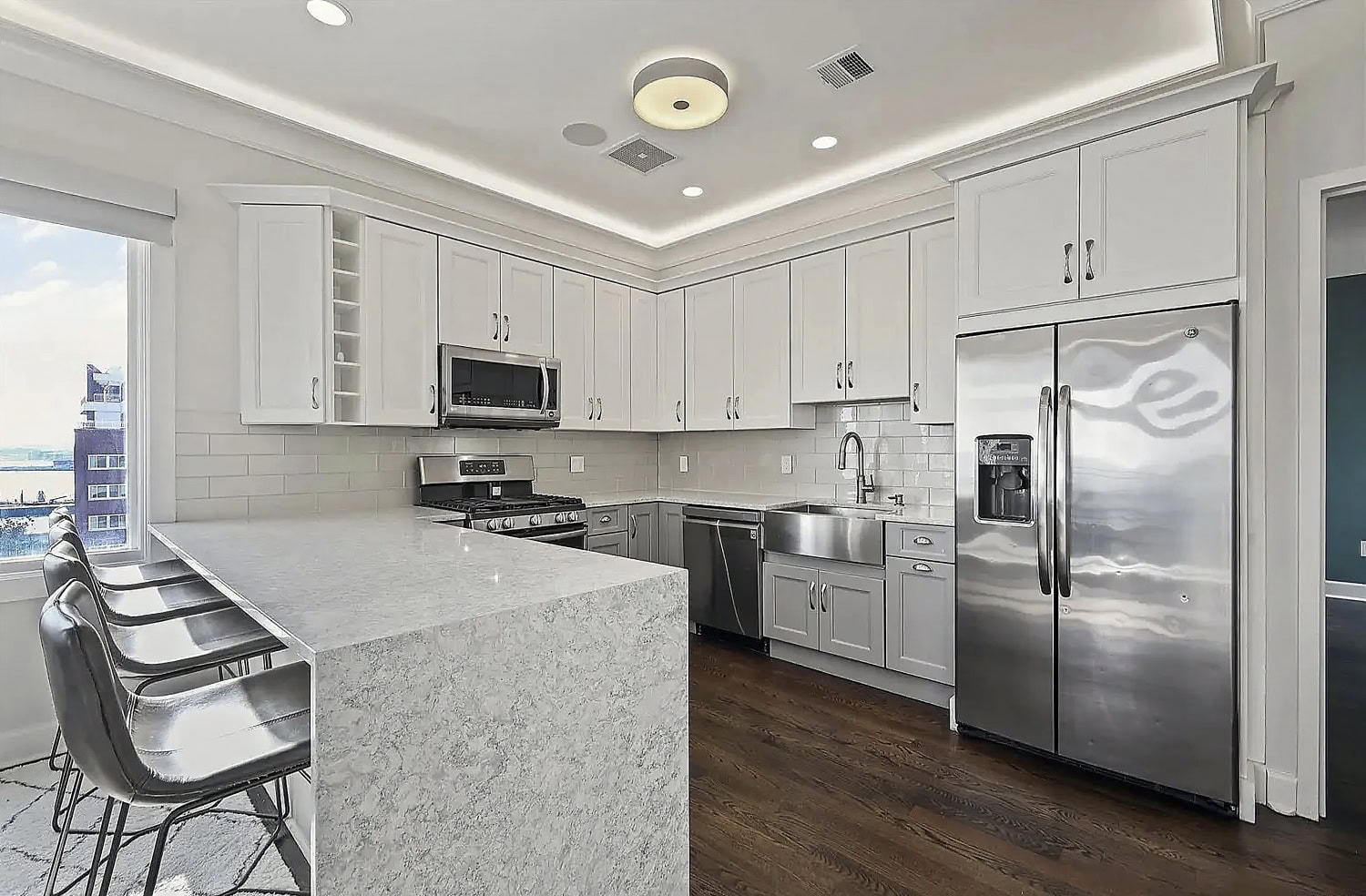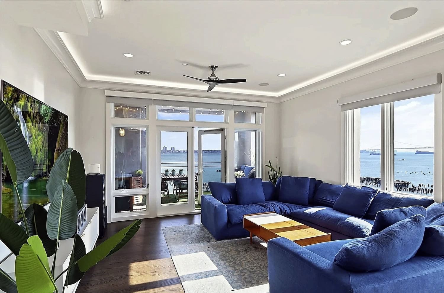 Asunnossa on kaksi makuuhuonetta, kolme kylpyhuonetta sekä terassi, jolta avautuu merinäköala New Yorkiin.