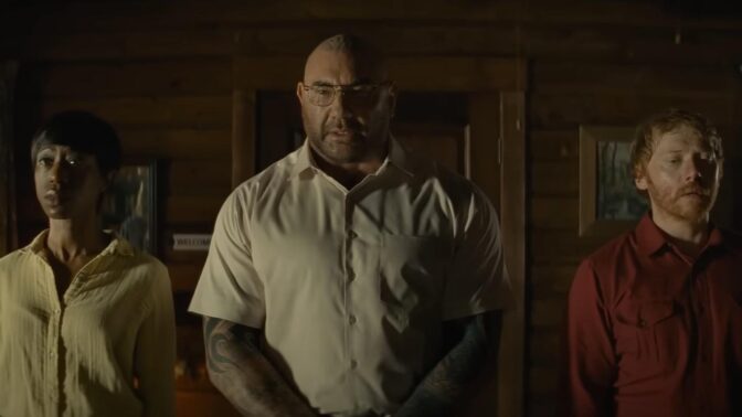 Knock At The Cabinia tähdittävät muun muassa Marvel-tähti Dave Bautista ja Harry Potter -elokuvista tuttu Rupert Grint sekä Jonathan Groff, Ben Aldridge ja Nikki Amuka-Bird.