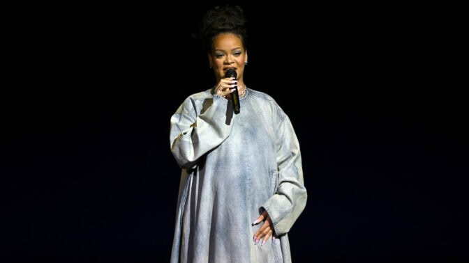 Toista lastaan odottava pop-tähti nousi lavalle kertomaan tilaisuuteen osallistuneille tähdittävänsä tulevaa Smurffit-elokuvaa. Rihanna antaa tulevassa elokuvassa äänensä Smurffiinalle.