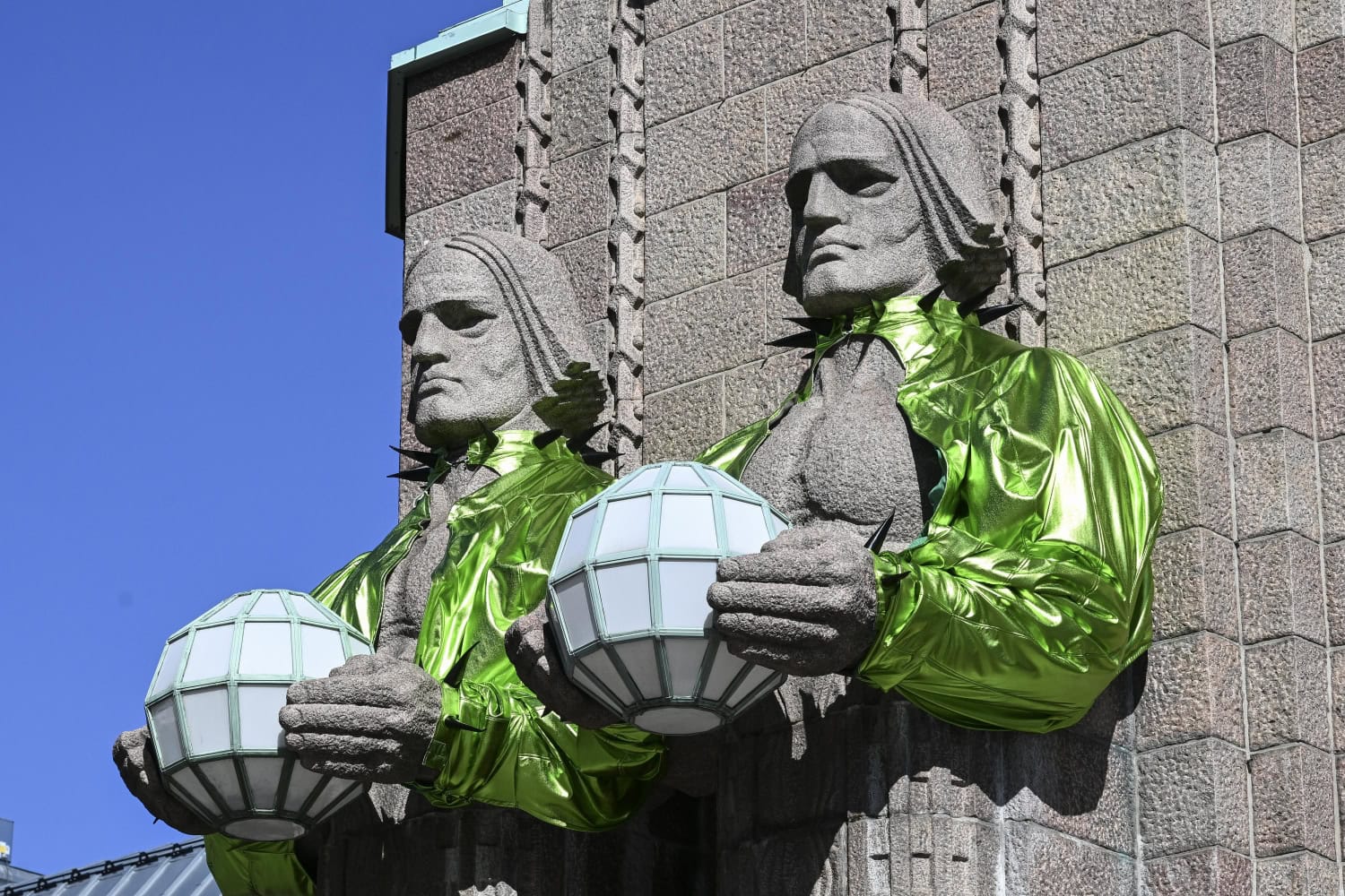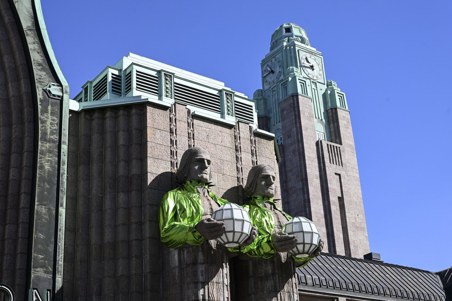 Tänään Helsingissä monet ovat tulleet hyvälle mielelle, sillä Helsingin rautatieaseman ikoniset kivimiehet ovat mukana Euroviisu-huumassa.