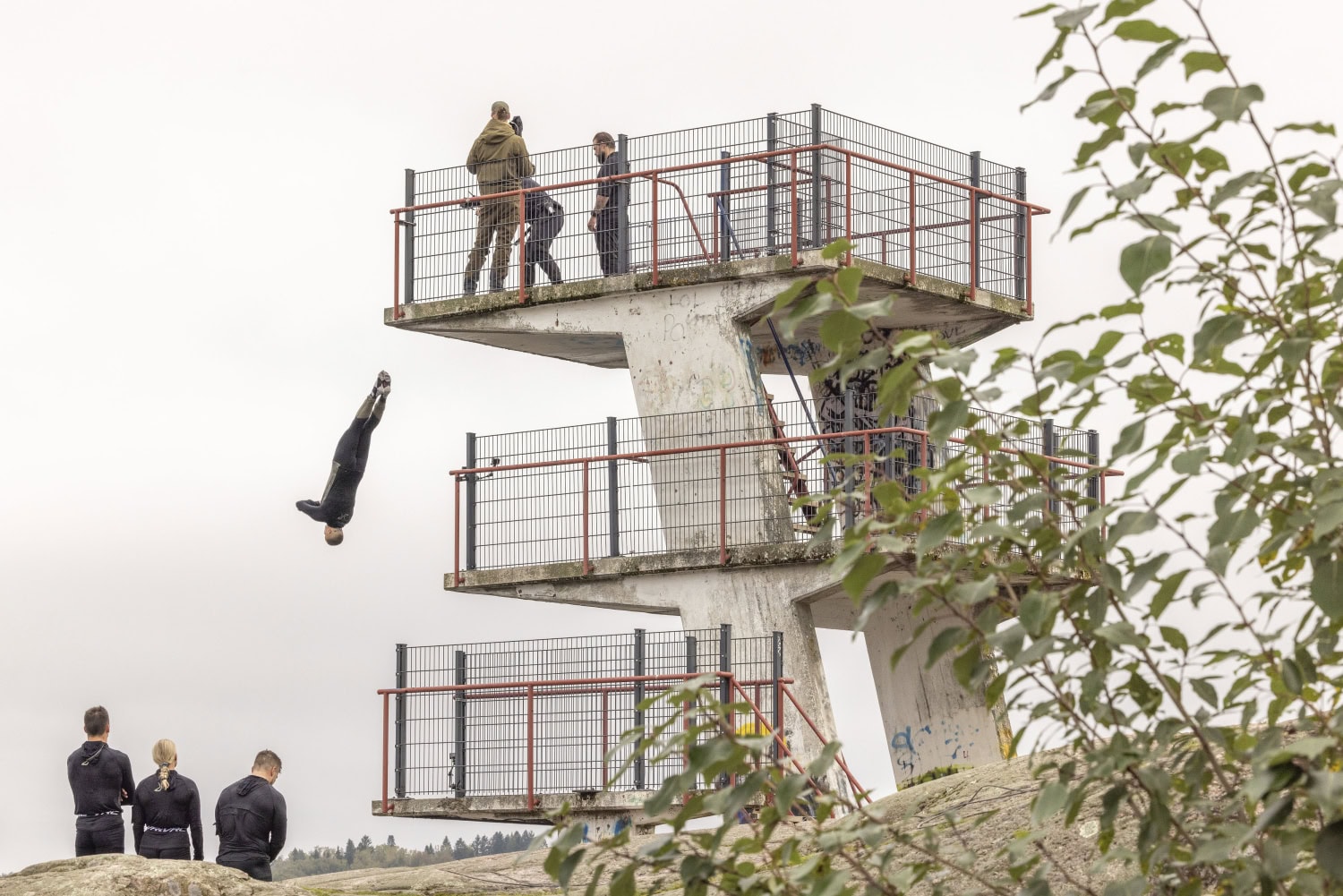 Gustafssoninkaan osalta tehtävä ei lopulta mennyt aivan nappiin, vaan hän läimähti veteen samalla tavalla vaarallisessa asennossa, kasvot ja vatsa edellä.