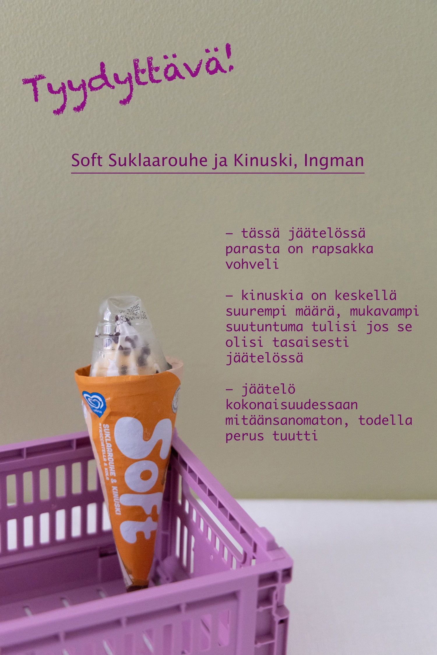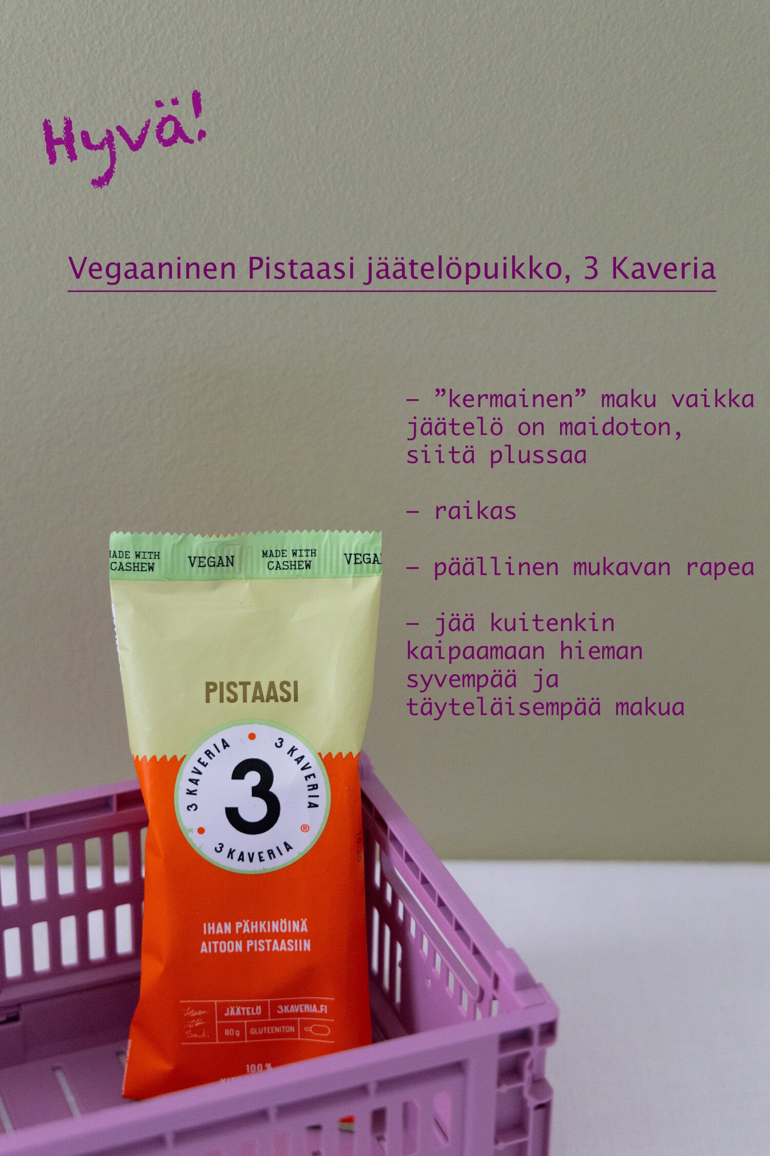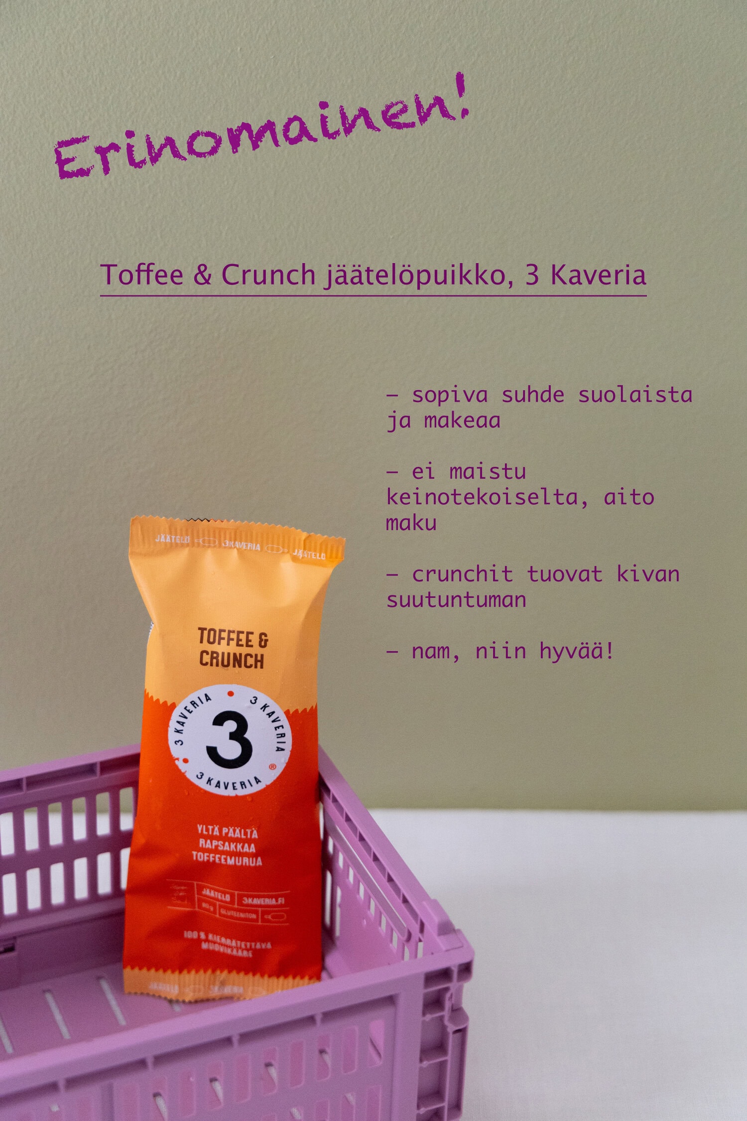Erinomaisille pisteille ylsi neljä jäätelöä, jotka tarttuvat varmasti testaajien käsiin pakastealtaasta jatkossakin. Pisteiden perusteella koko testin voittajaksi selviytyi alla näkyvä Toffee & Crunch jäätelöpuikko 3 Kaveria -brändiltä.