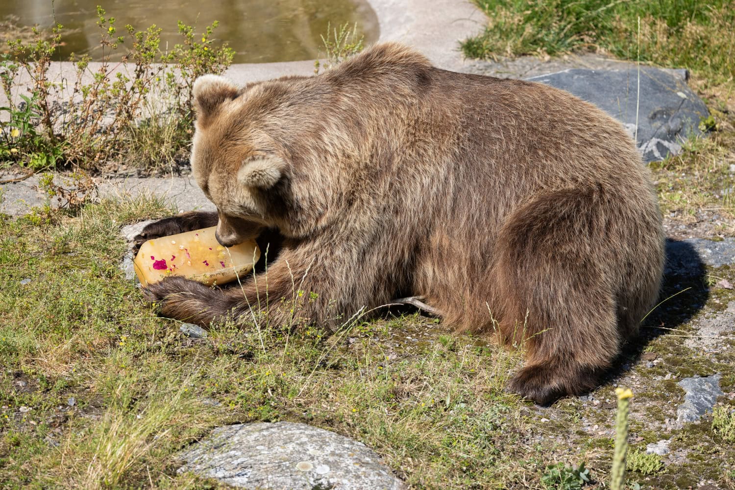 Myös karhut nauttivat jäädykkeistään. Niiden herkut koostuivat omenan lisäksi pensasmustikasta, maapähkinästä ja ruusun terälehdistä. Karhut innostuivat raapimaan kynsillään jäisen herkun pinnasta mustikoita ja yrittivät halkaista herkkuja painollaan.